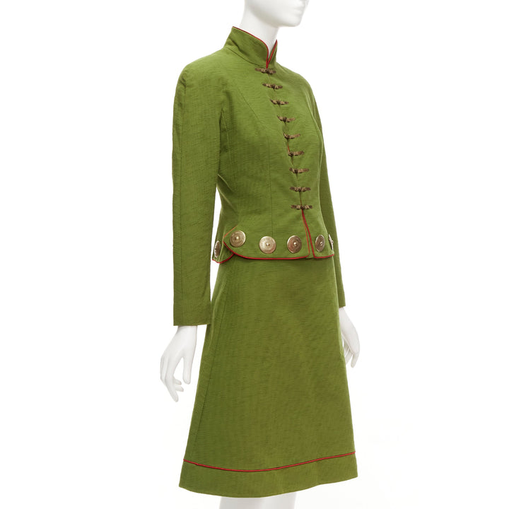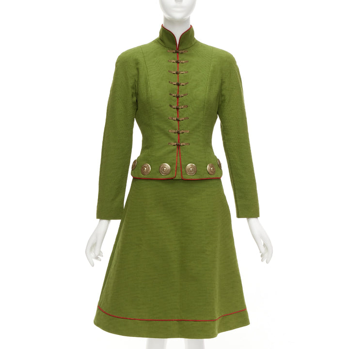 rare CHRISTIAN DIOR John Galliano 1999 Mao Communist green skirt suit FR36/38