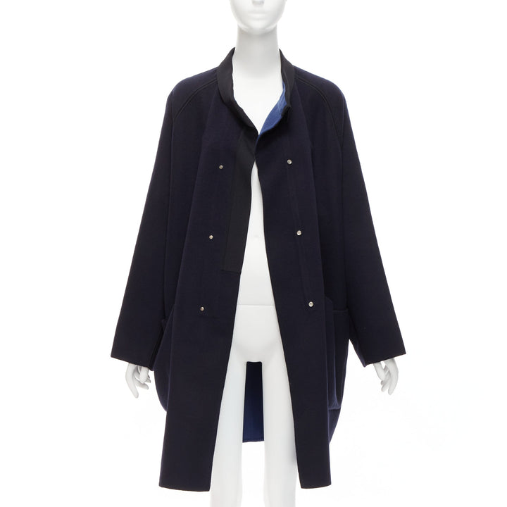 rare HERMES Martin Margiela navy double faced cashmere oversized cocoon coat FR42 XL