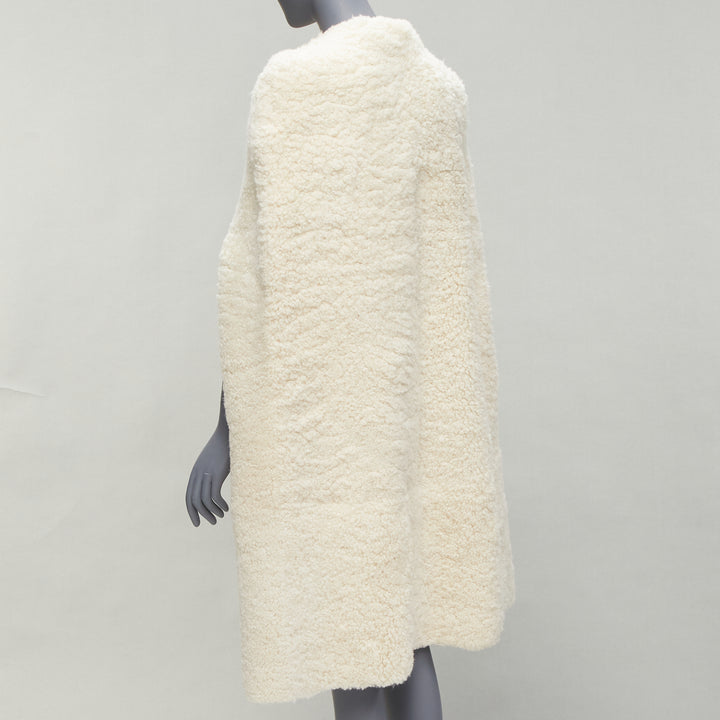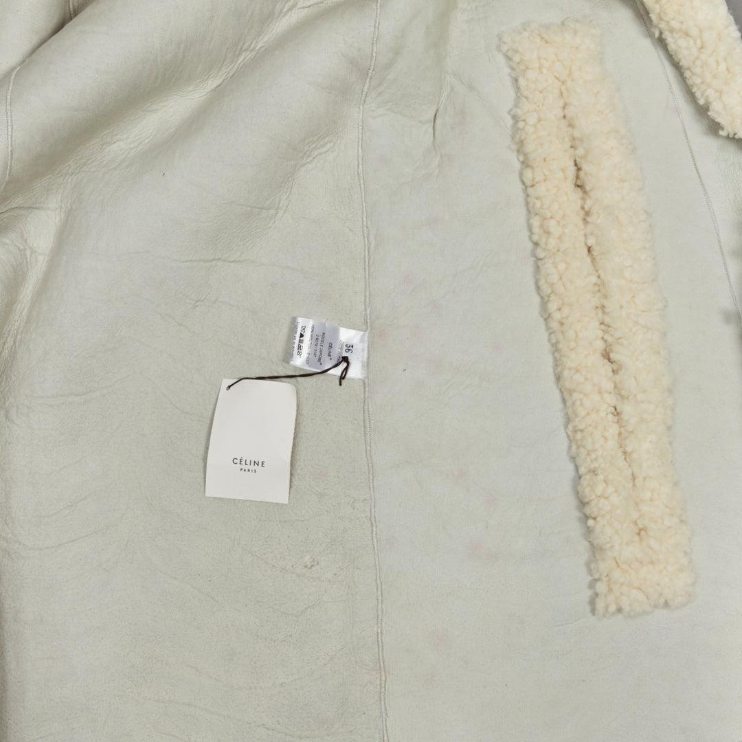 rare OLD CELINE Phoebe Philo 2010 Runway gold buckle cream shearling cape FR36