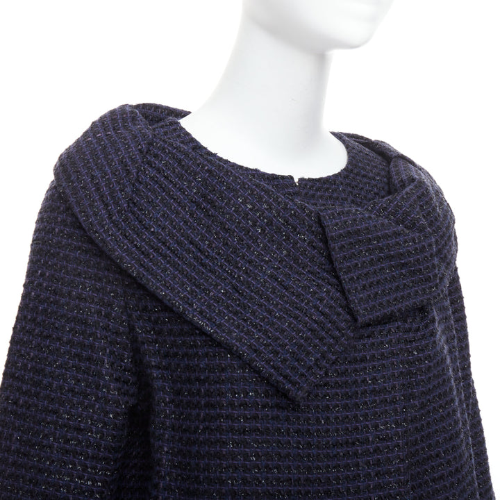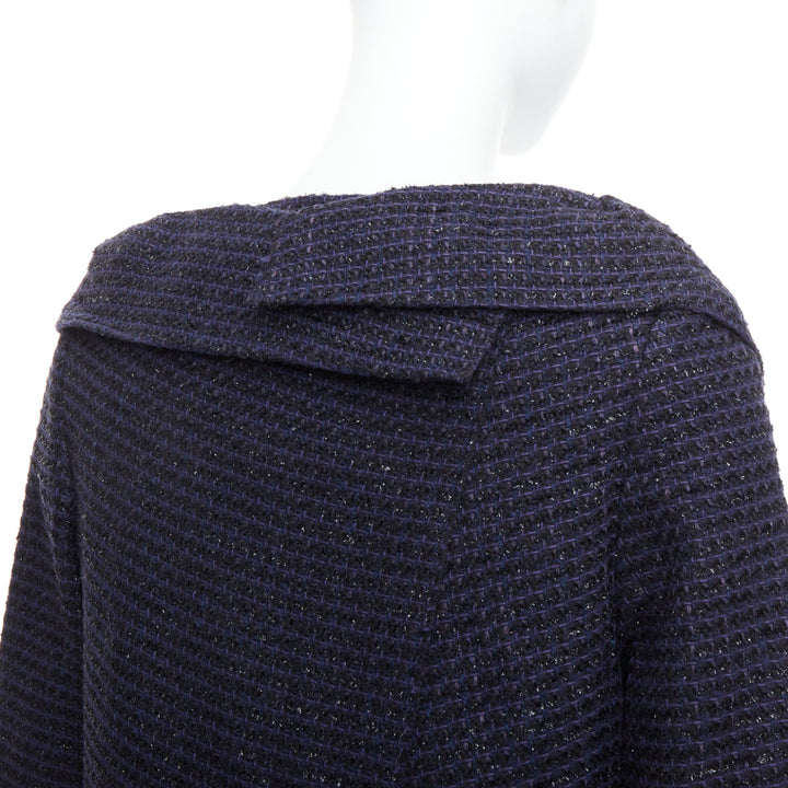 ROLAND MOURET navy cotton blend tweed collar structural coat UK12 L
