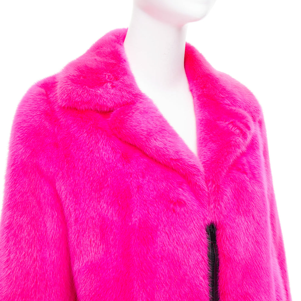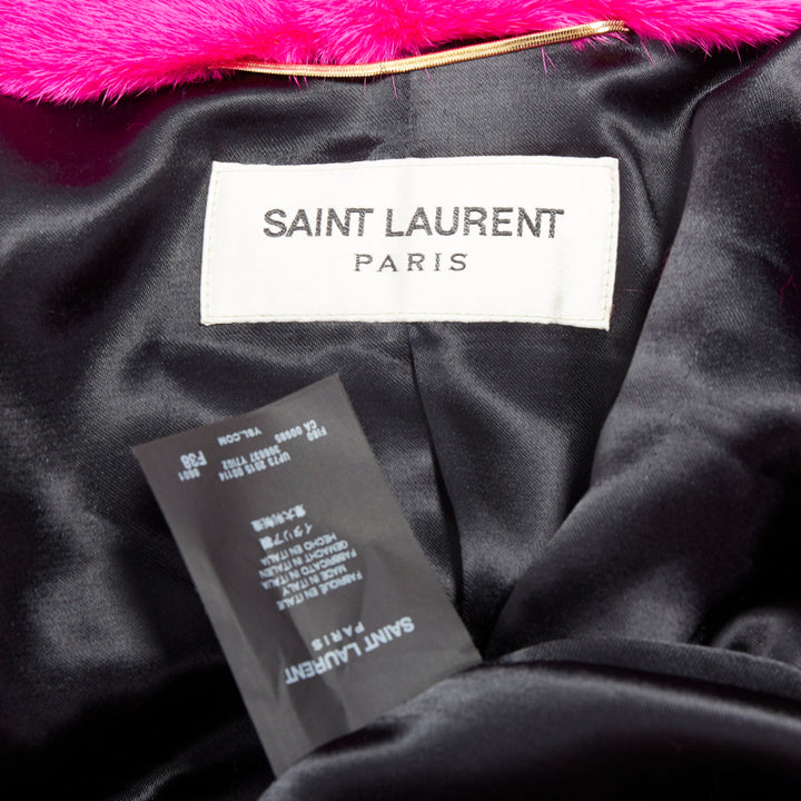 SAINT LAURENT 2015 hot pink mink fur black leather zip long coat FR38 M