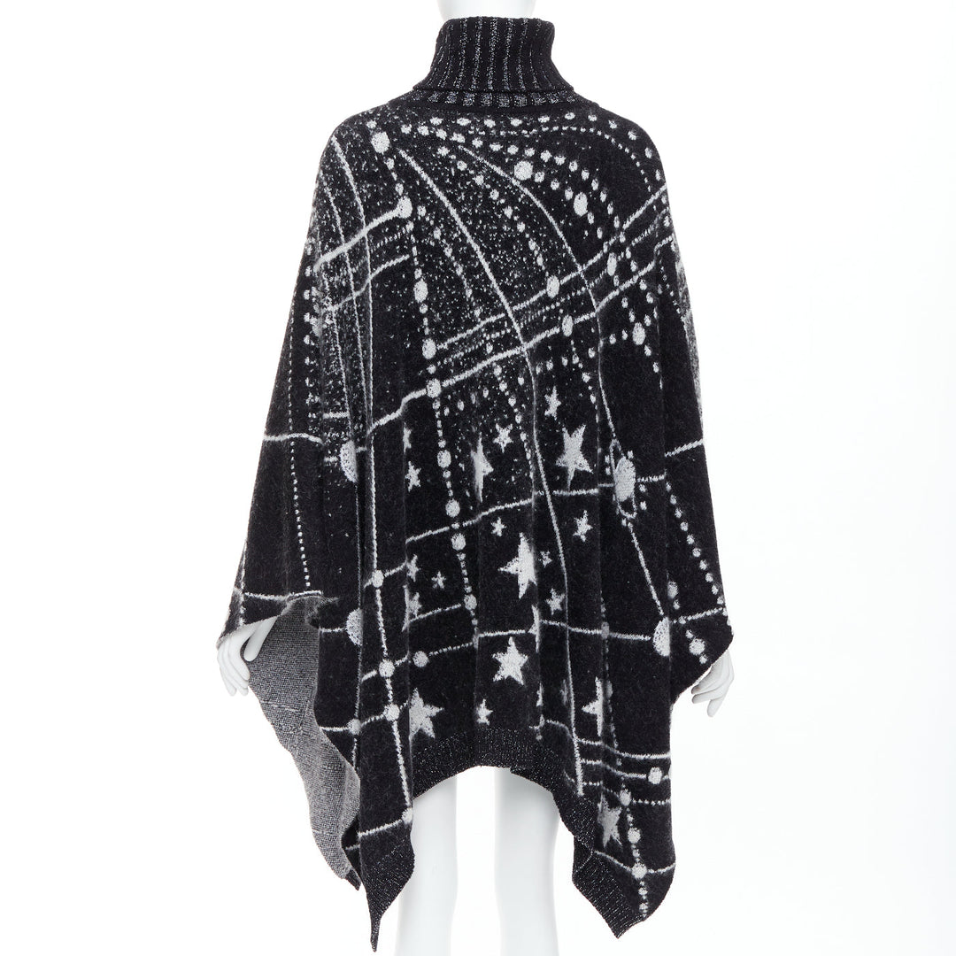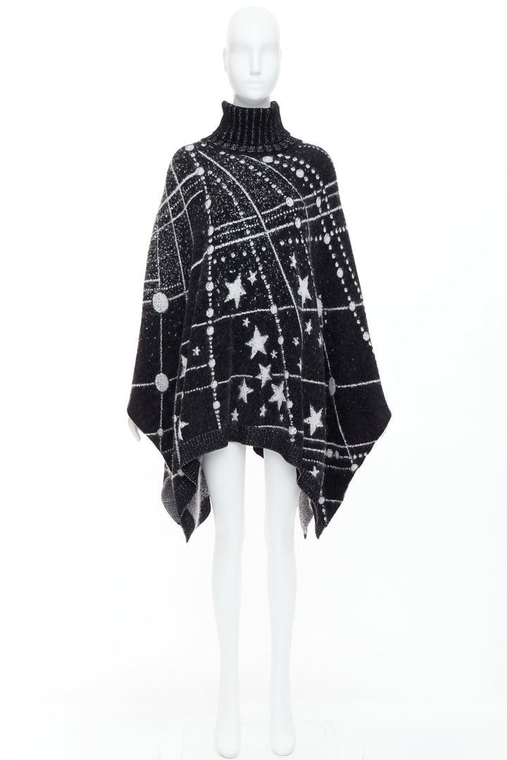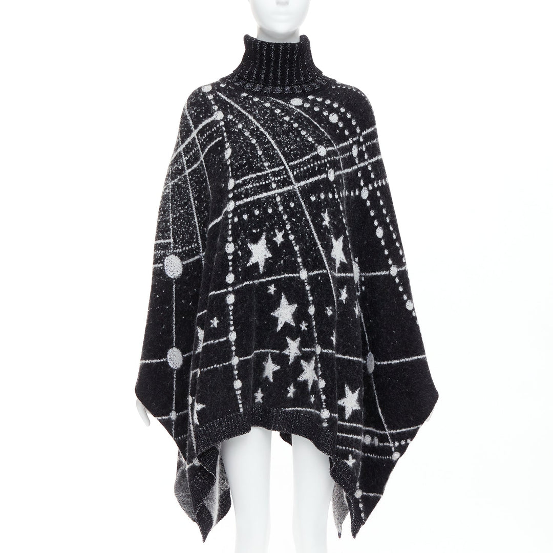 SAINT LAURENT 2018 Constellation black white astrology intarsia poncho cape S