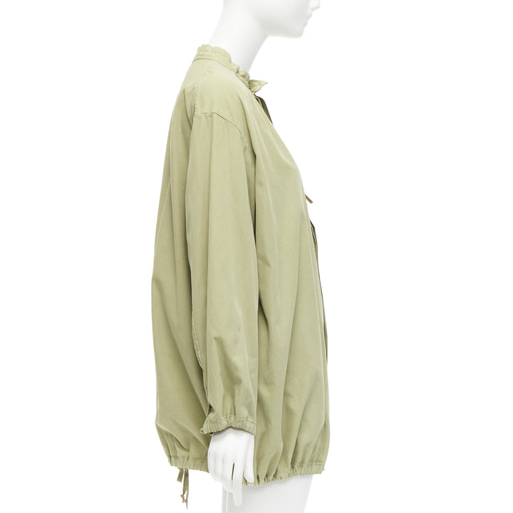 TICCA washed green 100% cotton tie collar centre parka jacket