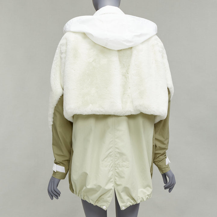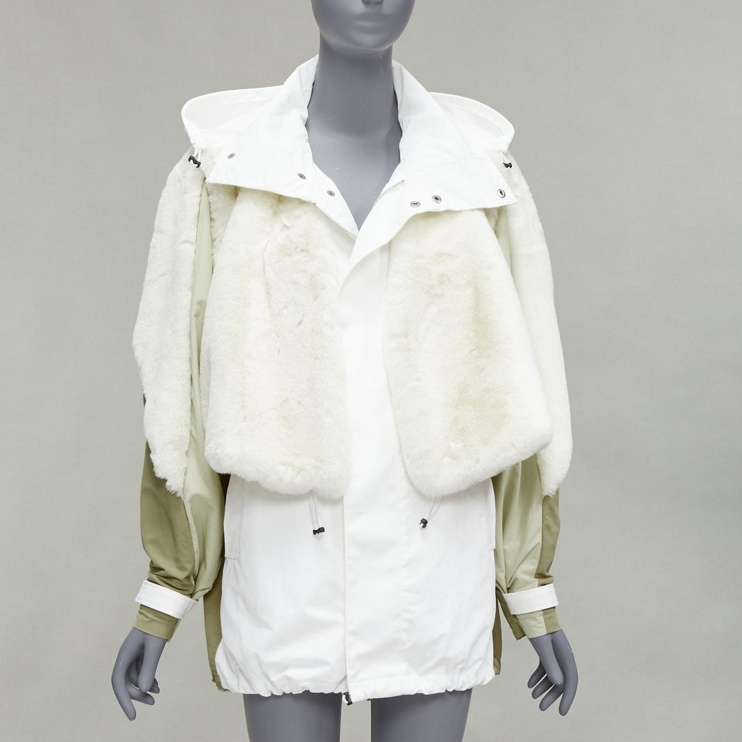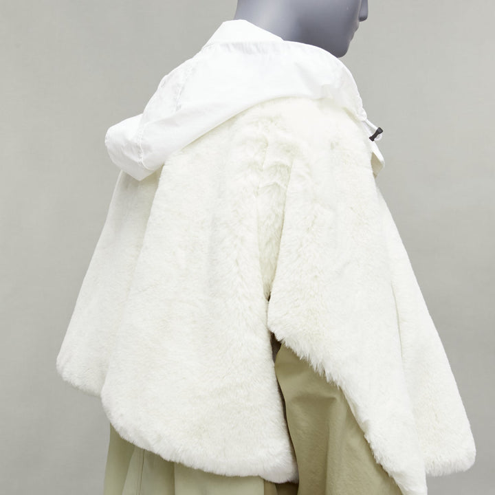 TOGA PULLA white nylon cream faux fur layered deconstructed parka jacket FR36 S