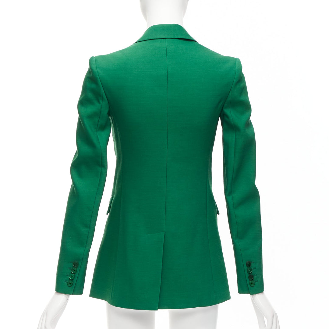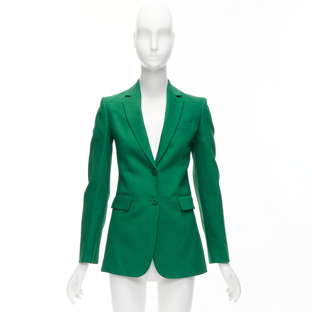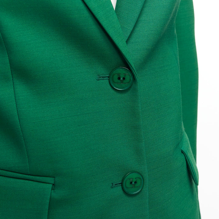 VALENTINO Kelly green wool silk fitted kong sleeve V neck blazer jacket IT36 XXS