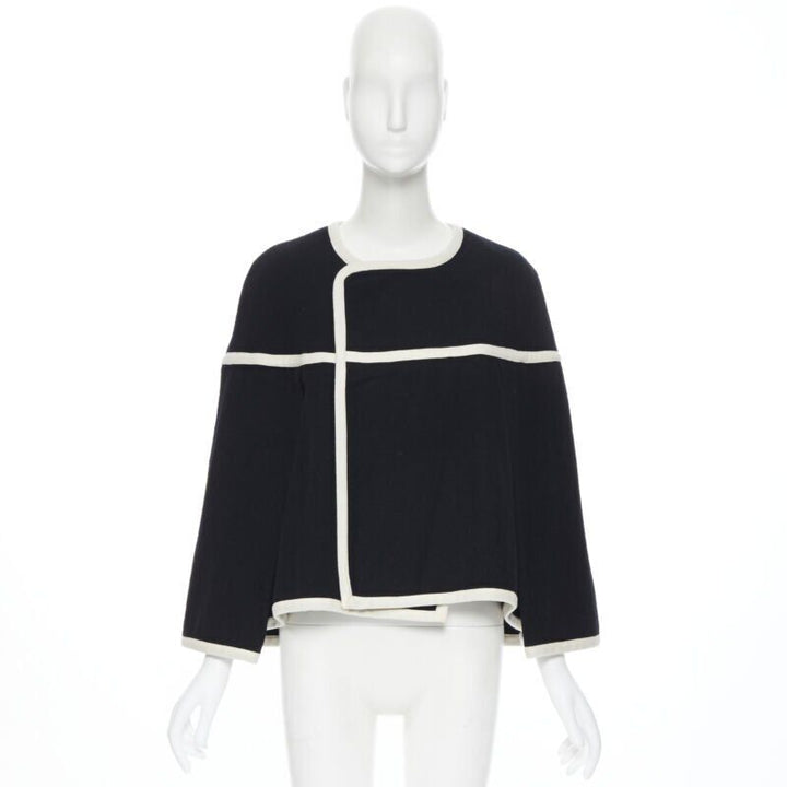 vintage COMME DES GARCONS 1989 Runway black white trimmed cape poncho jacket M