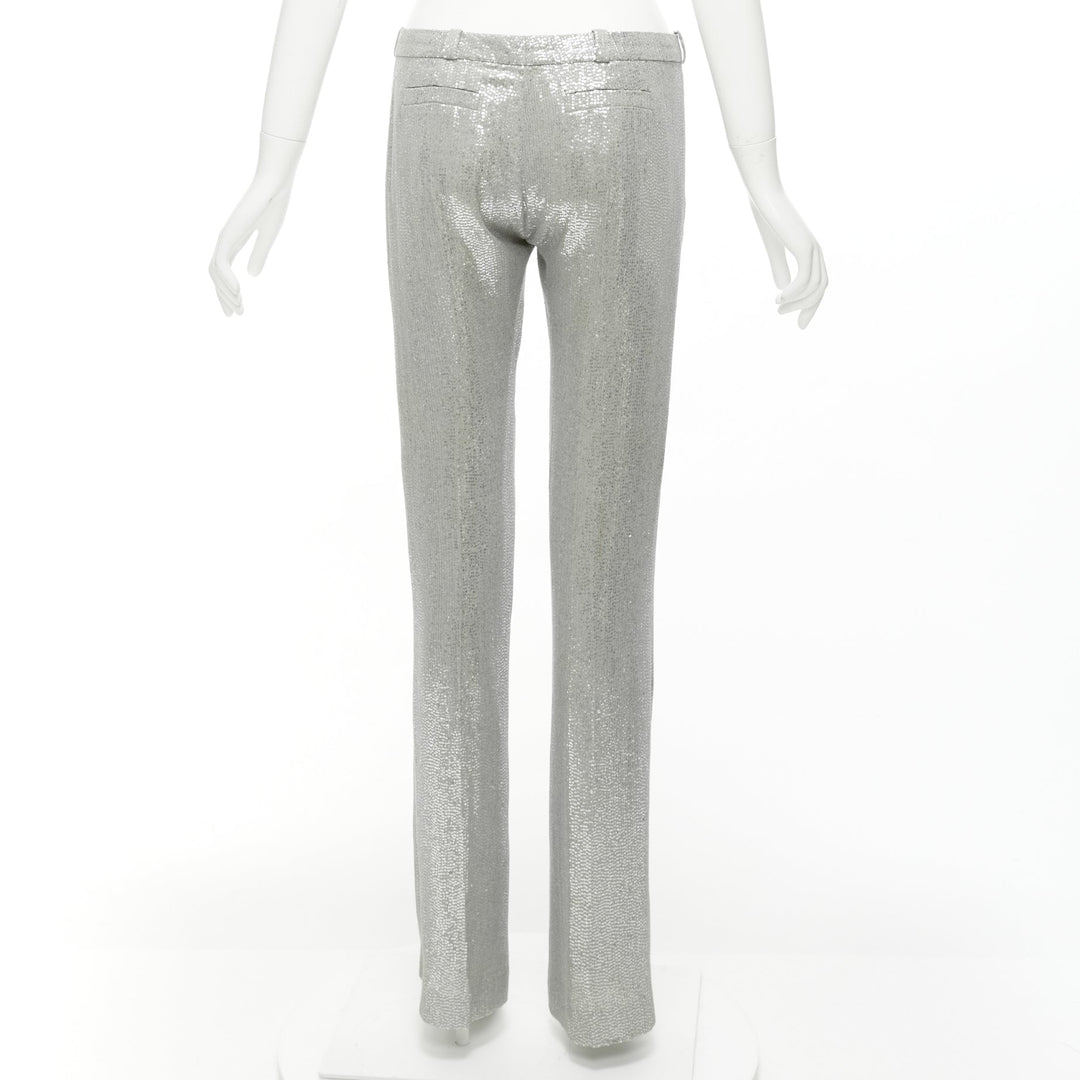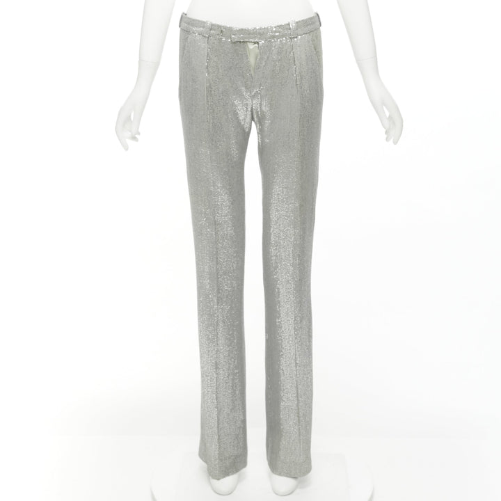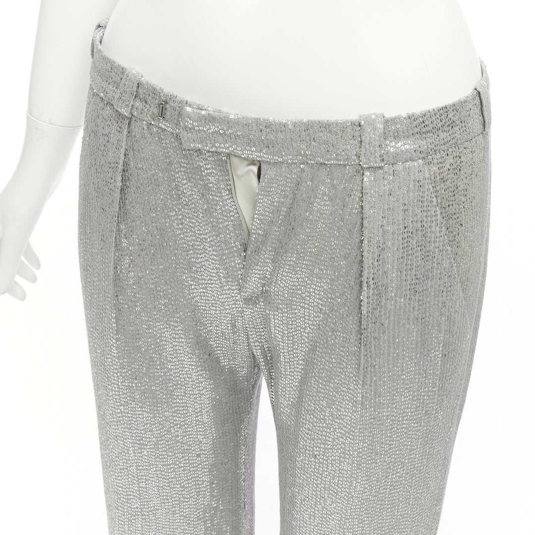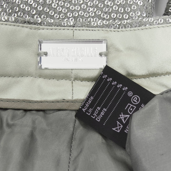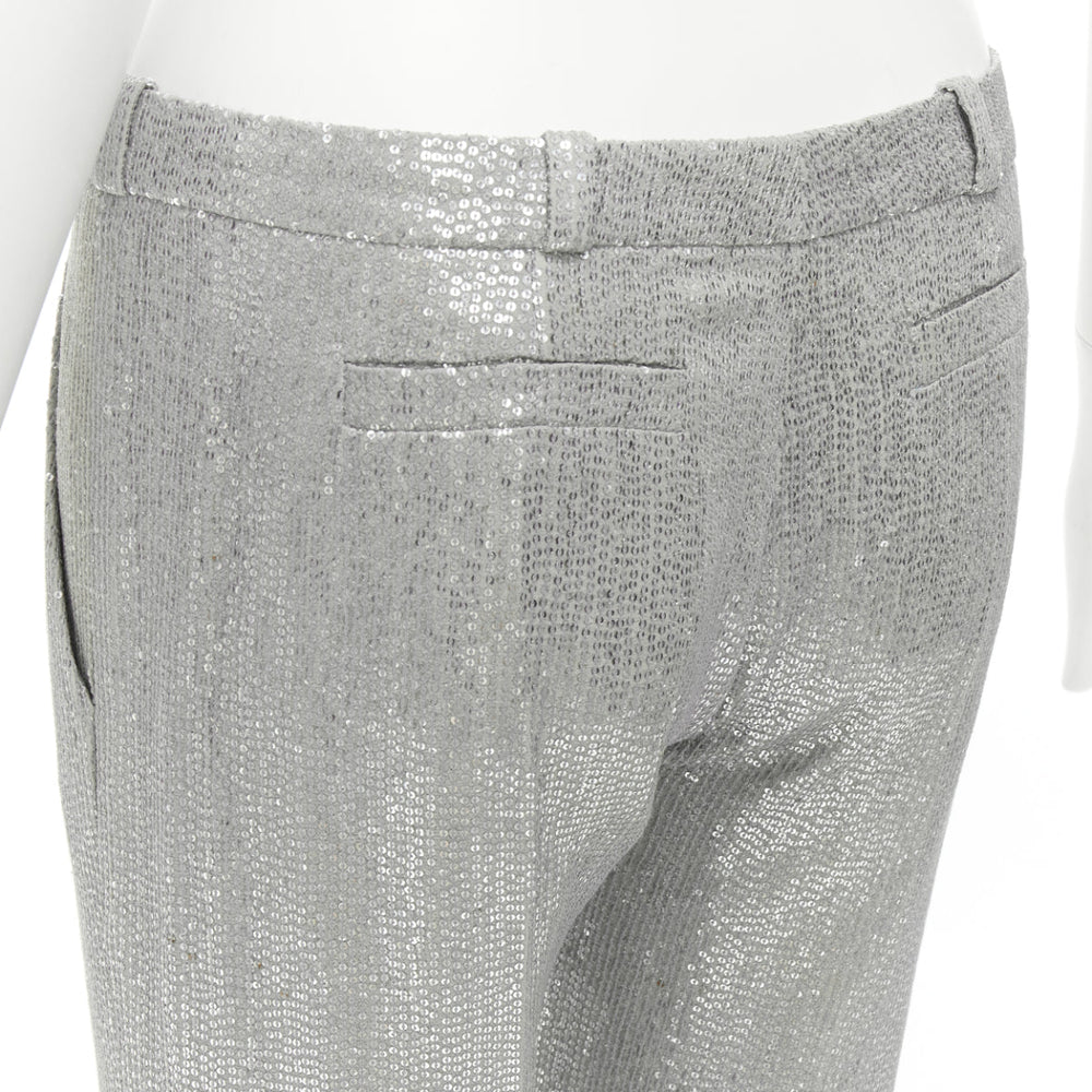 ALEXIS MABILLE 100% silk silver sequinned straight leg trouser pants FR36 S