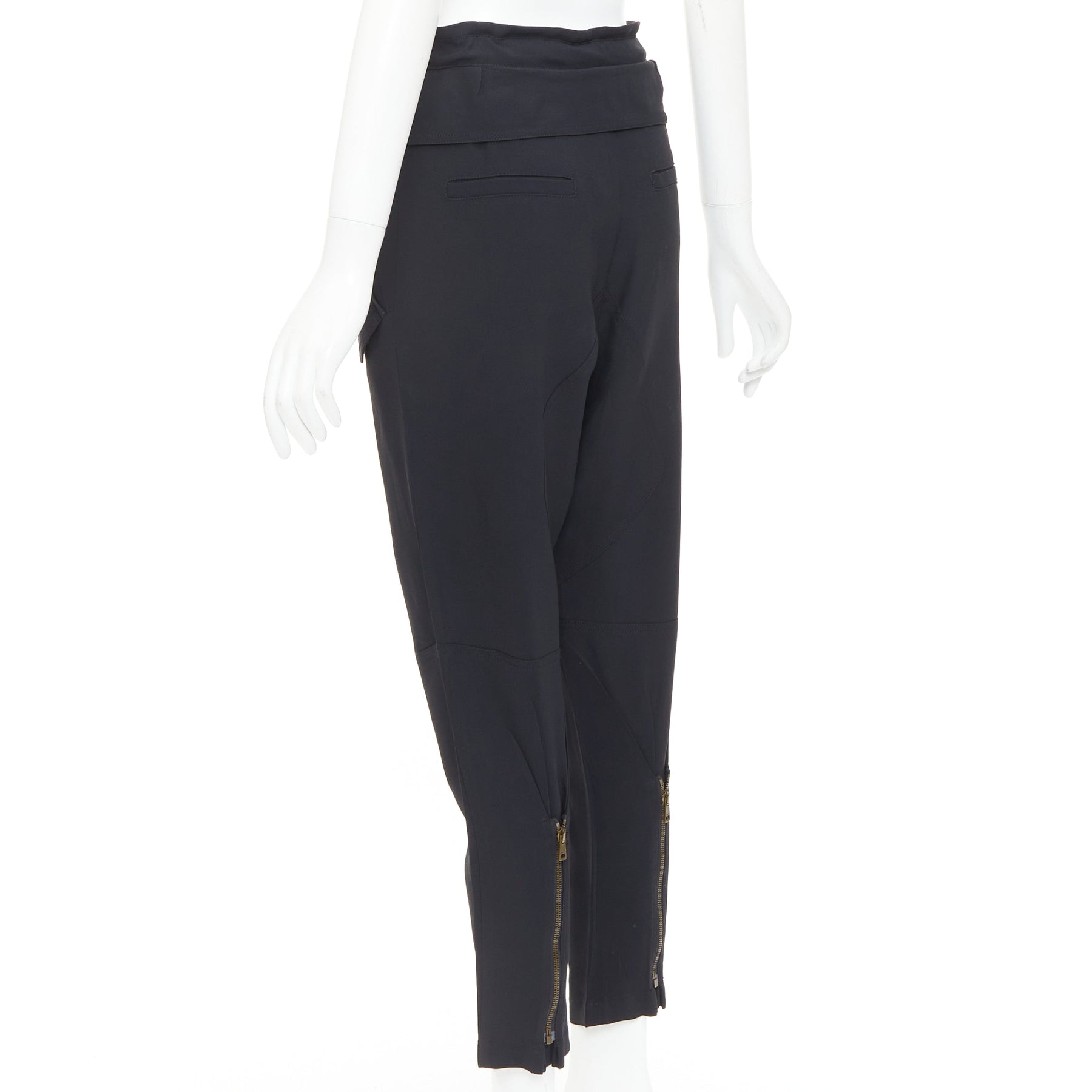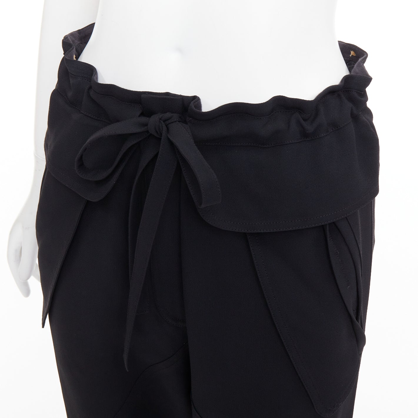 CHLOE black cady flap pocket bow front paperbag cropped harem trousers