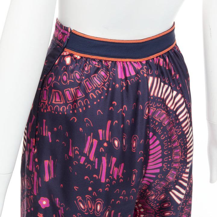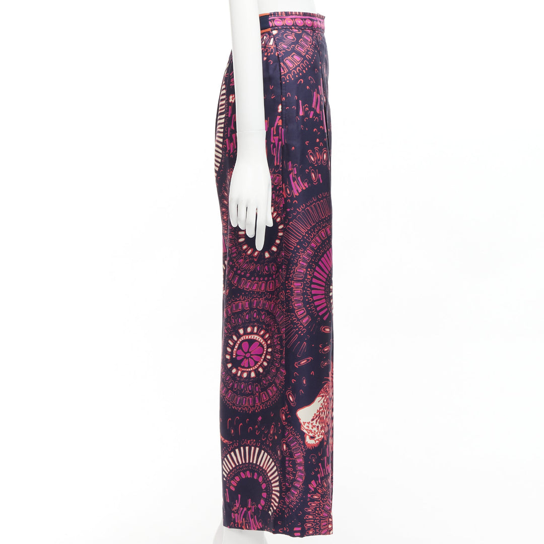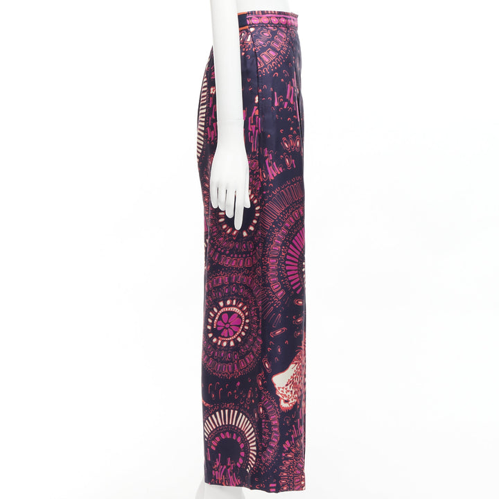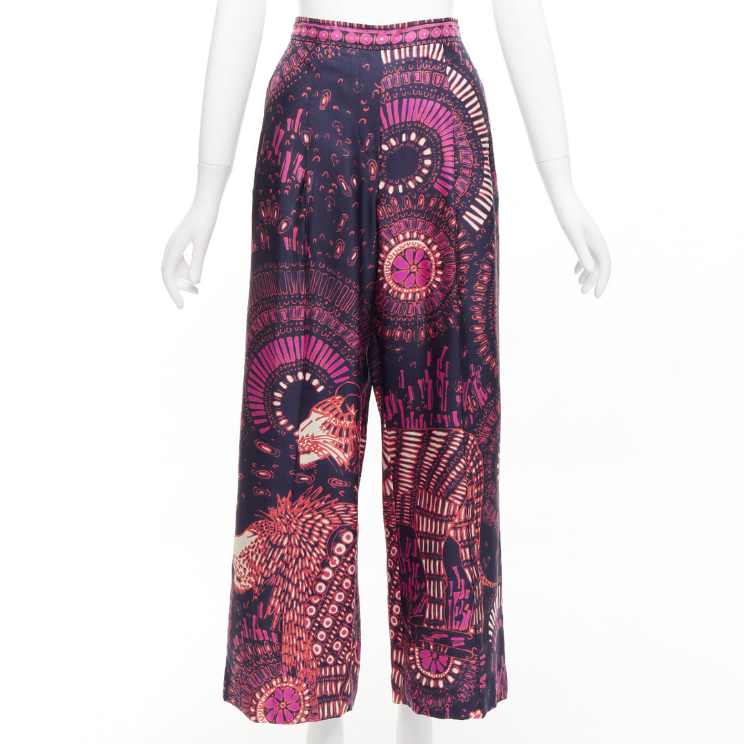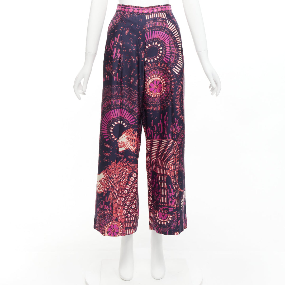 CHRISTIAN DIOR pink navy kaleidoscope animal print cotton wide pants FR36 S