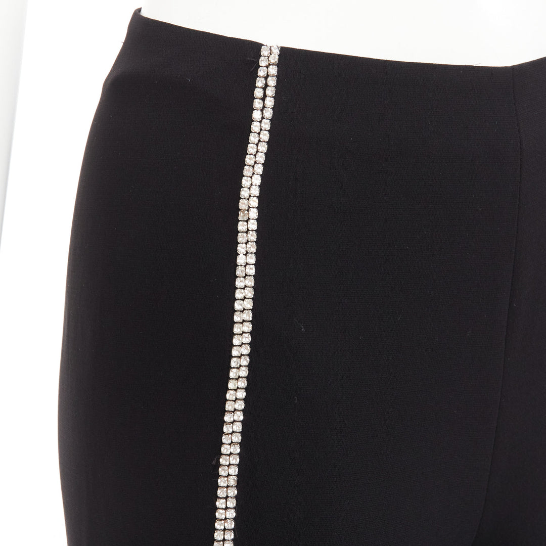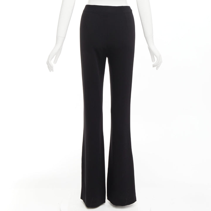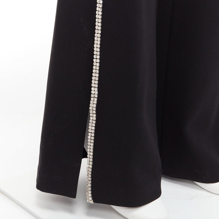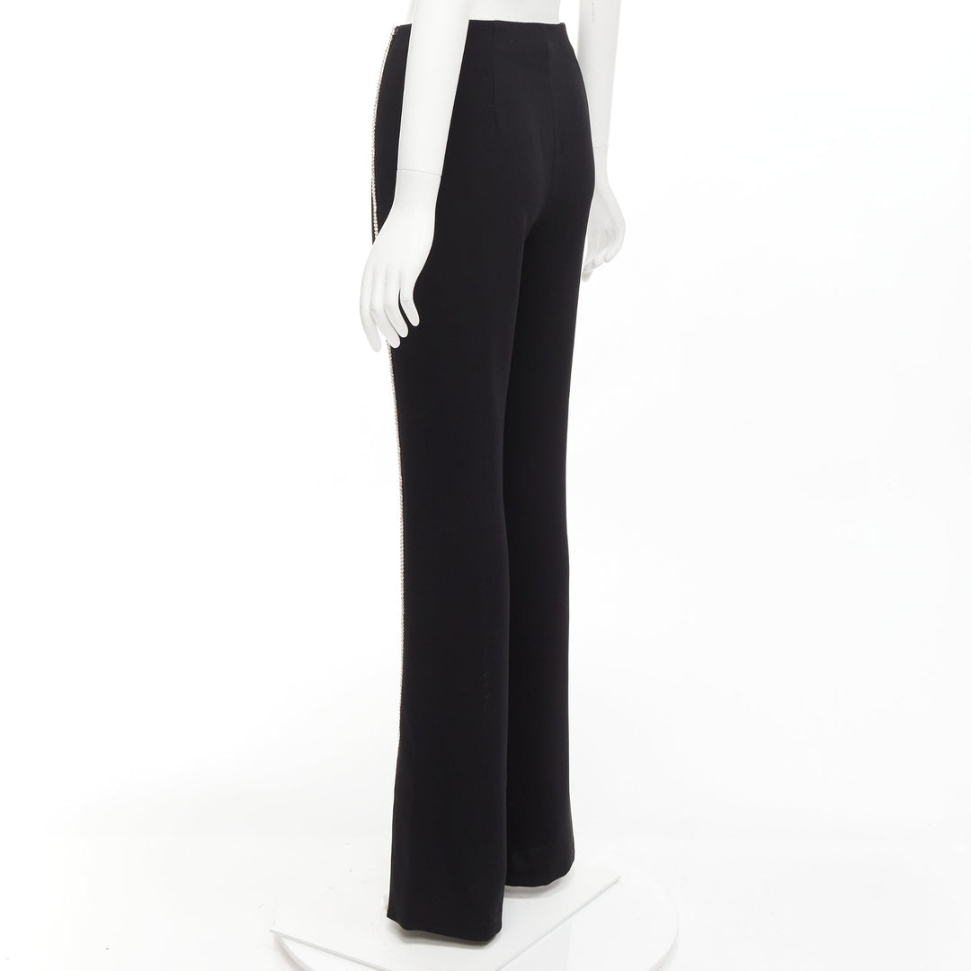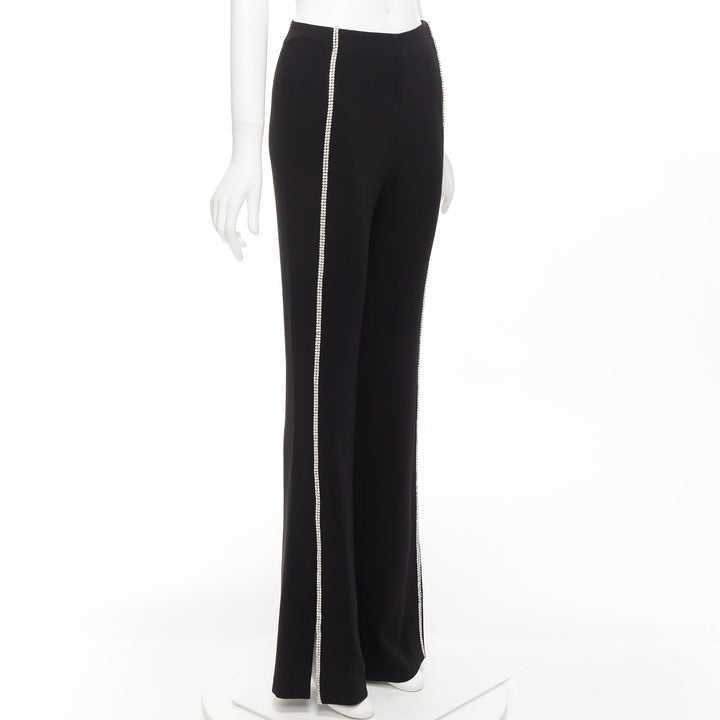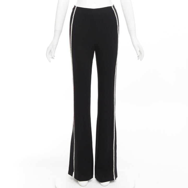 CINQ A SEPT clear strass crystal trim black high waisted flare slit pants US0 XS