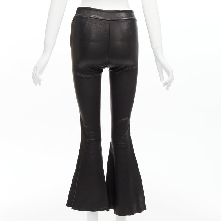 FRAME black genuine lambskin leather flared cropped pants US2 S