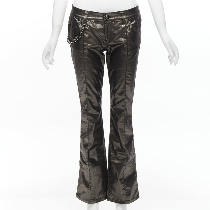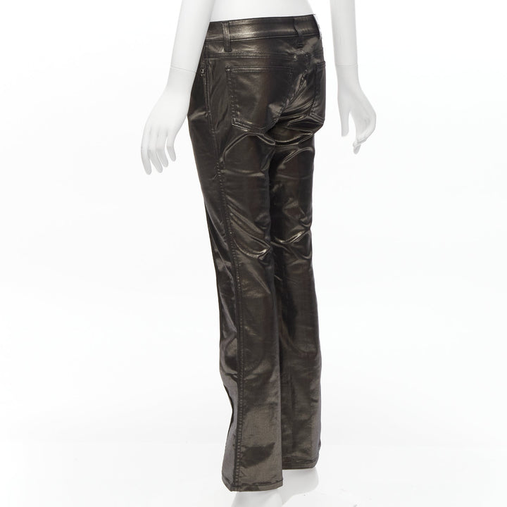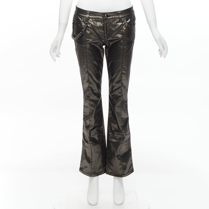 GUCCI Vintage gold gunmetal sheen hip chain flare leg pants IT42 M