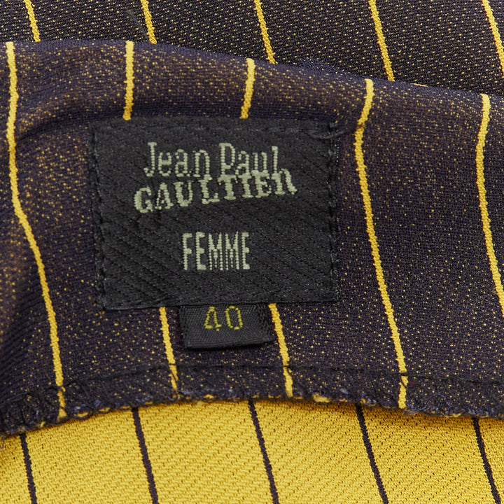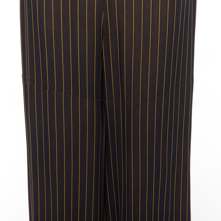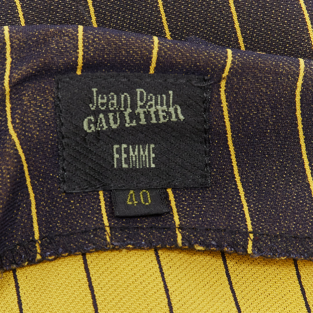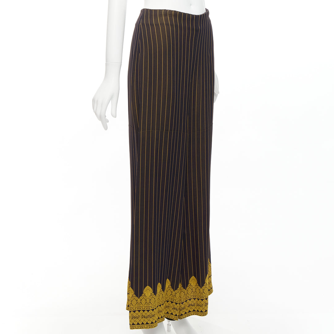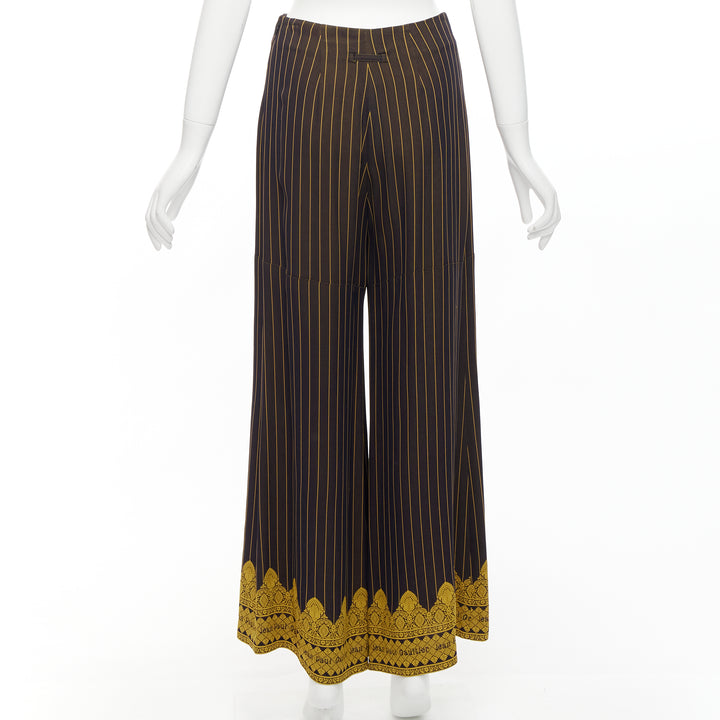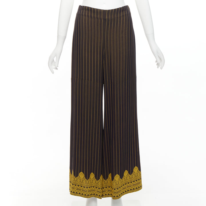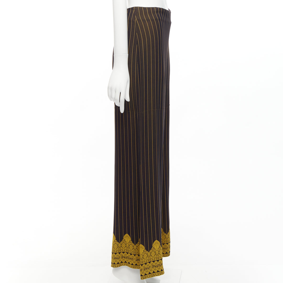 JEAN PAUL GAULTIER FEMME black gold striped logo trim wide leg pants IT40 L