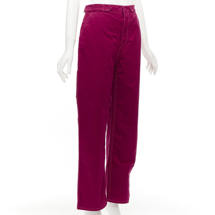 MARNI burgundy cotton linen topstitch belt waist wide leg pants IT38 XS