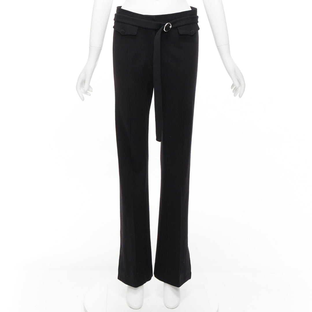 OLD CELINE Phoebe Philo black 100% virgin wool belted wide pants FR38 M