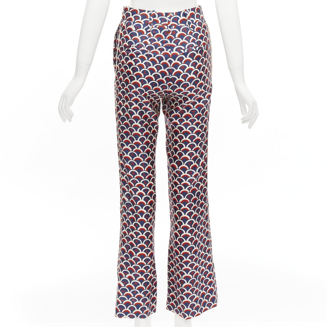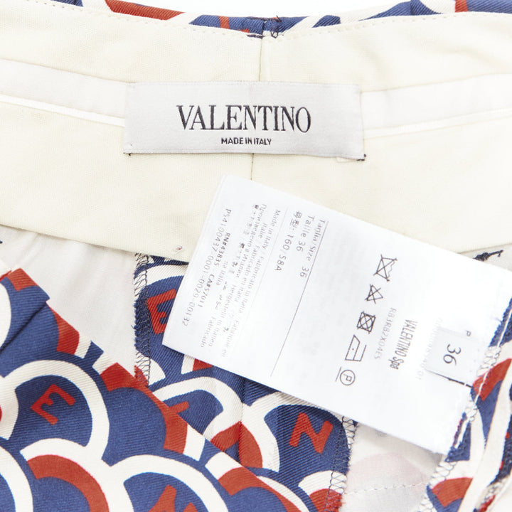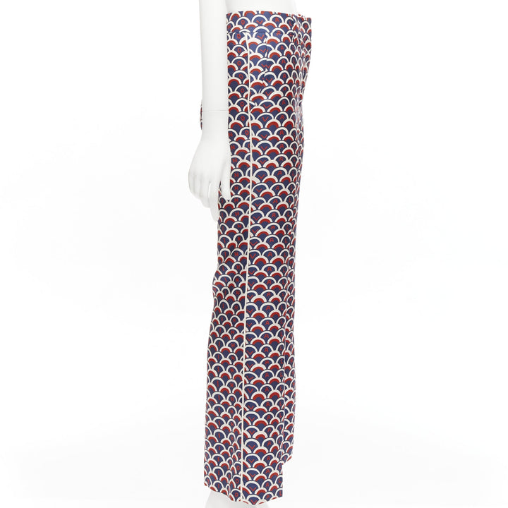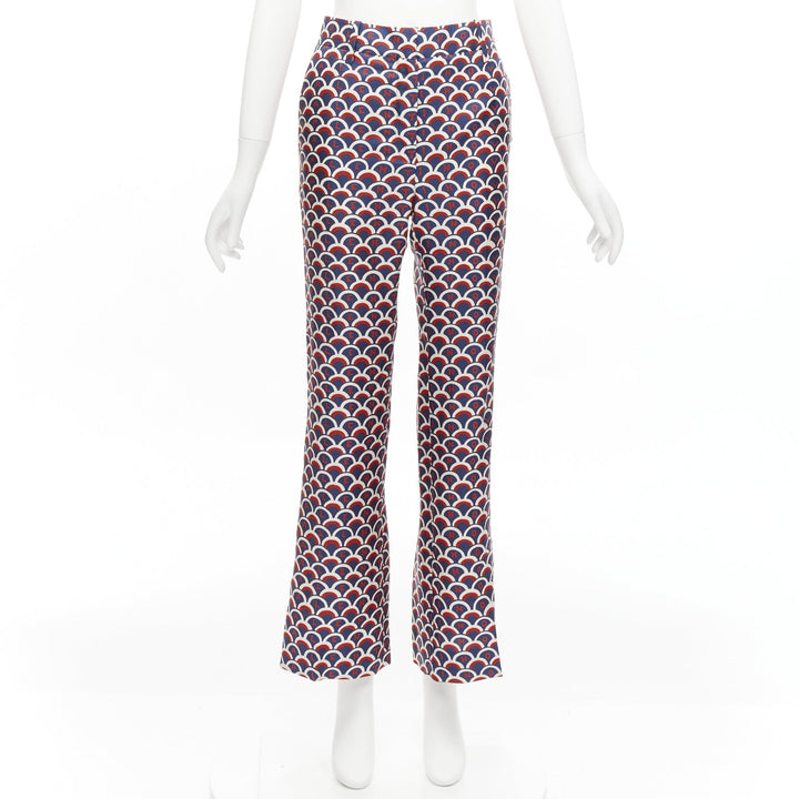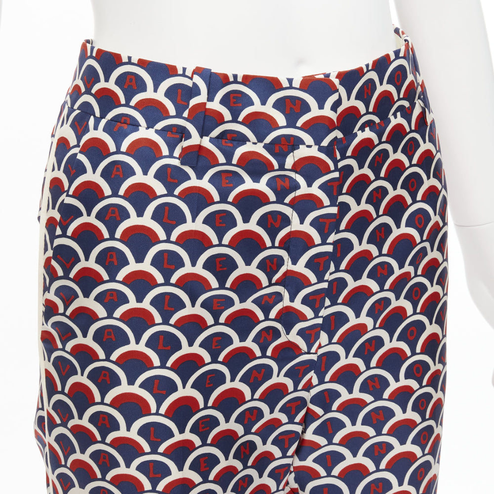 VALENTINO 100% silk scallop print logo print navy red flared pants IT36 XXS