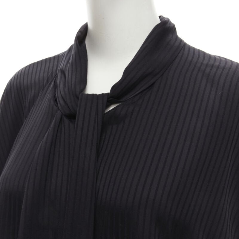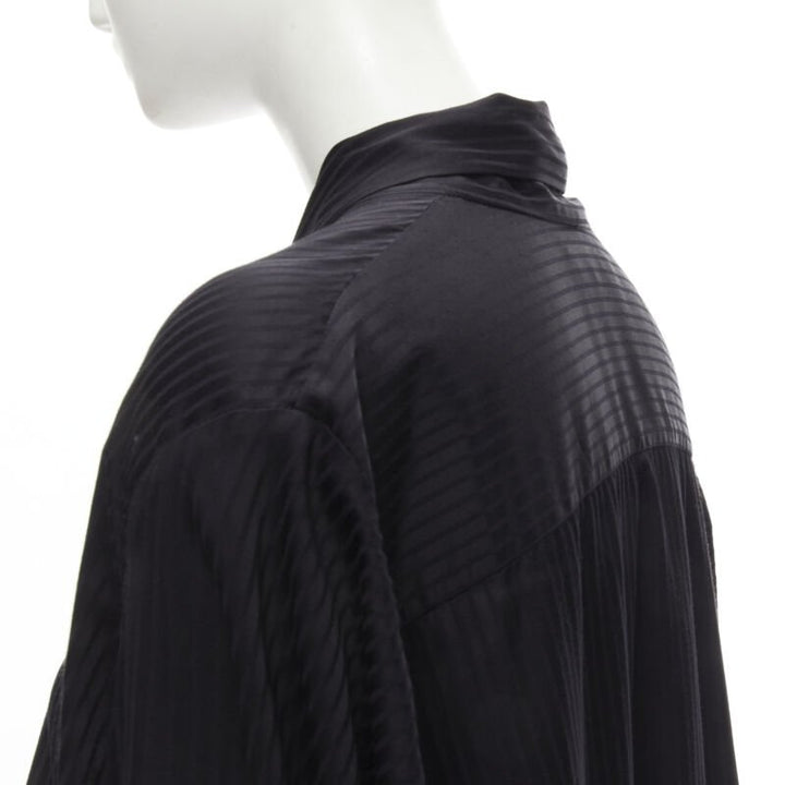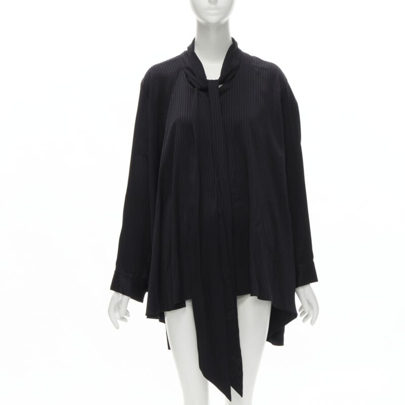 BALENCIAGA 2020 Demna black striped pussy bow cascade hem oversized shirt FR36 S
