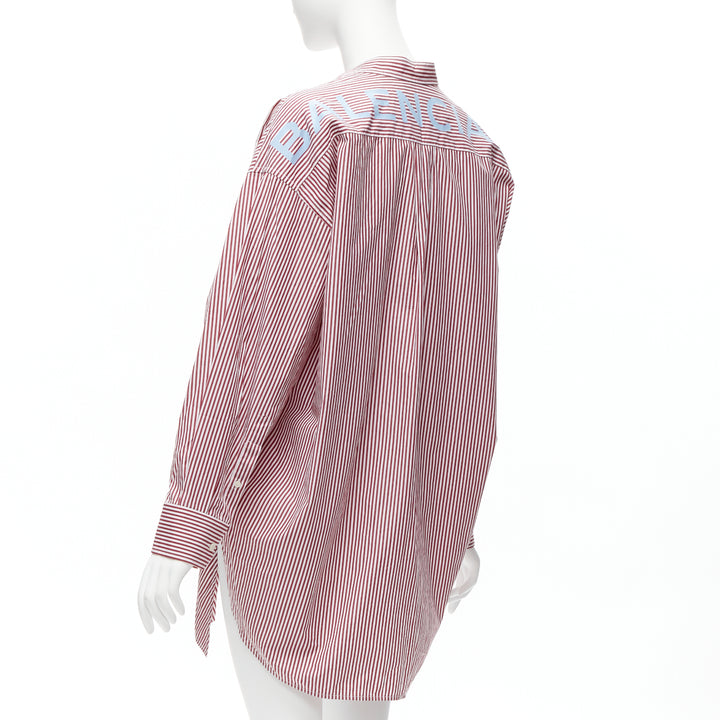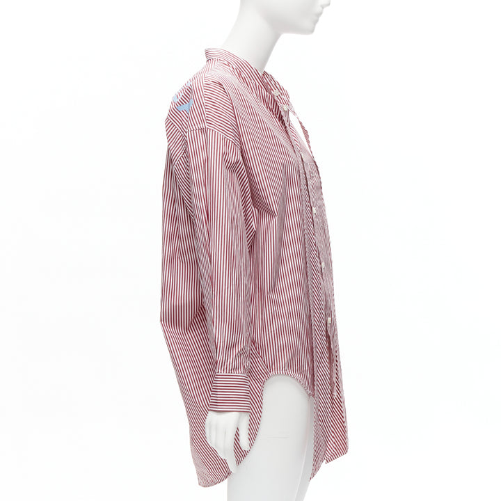 BALENCIAGA Demna 2017 red white stripe relaxed blue BB logo oversized shirt FR34 XS
