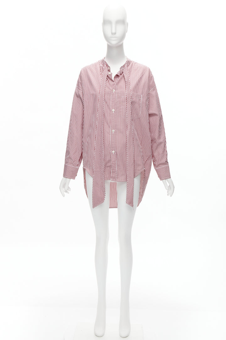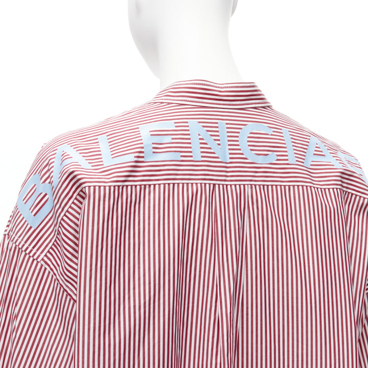 BALENCIAGA Demna 2017 red white stripe relaxed blue BB oversized shirt FR34 XS