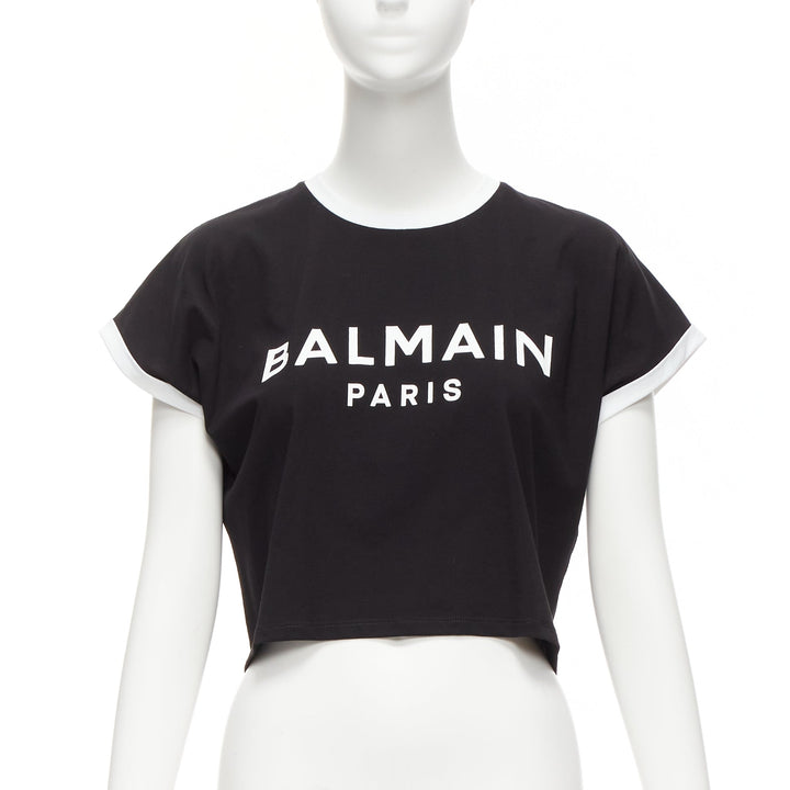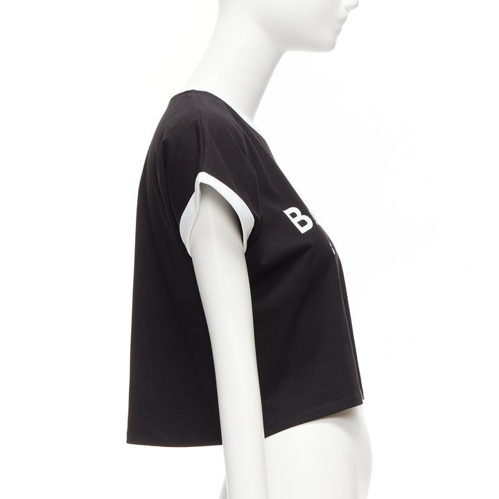 BALMAIN black white logo cap short sleeve ringer cropped tshirt XXS
