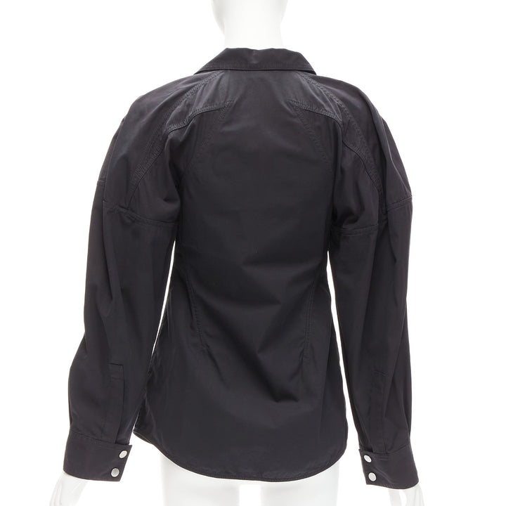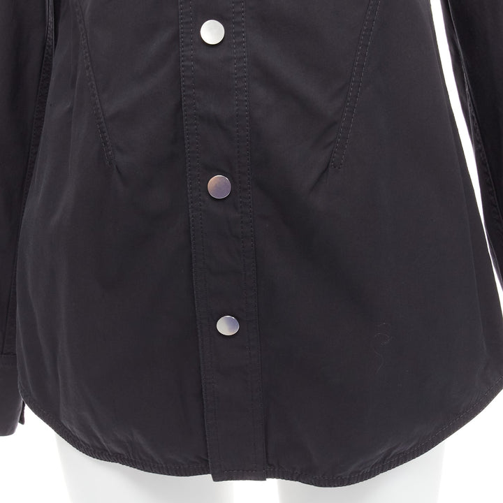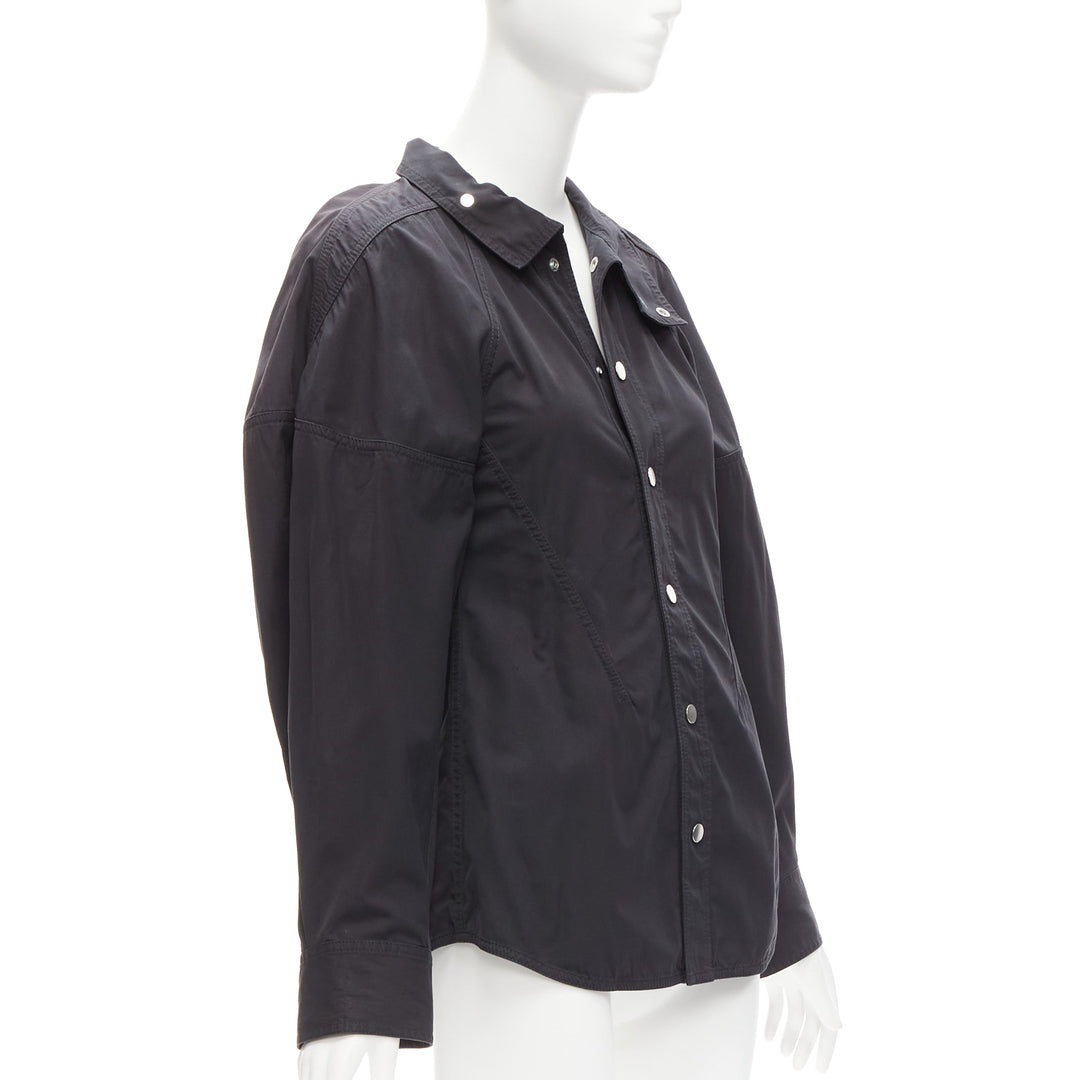 BOTTEGA VENETA black cotton blend 3D cut sleeves snap button shirt IT36 S