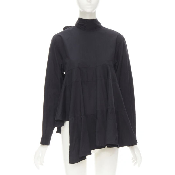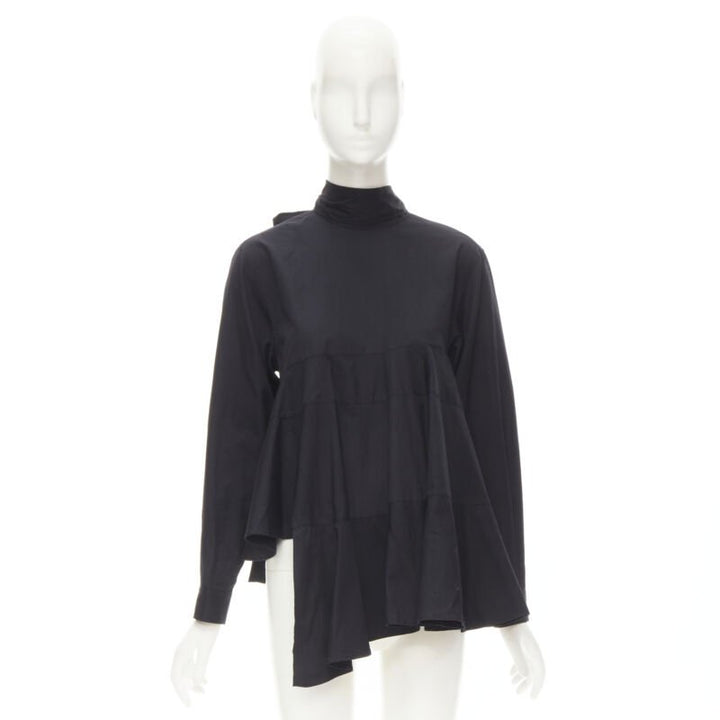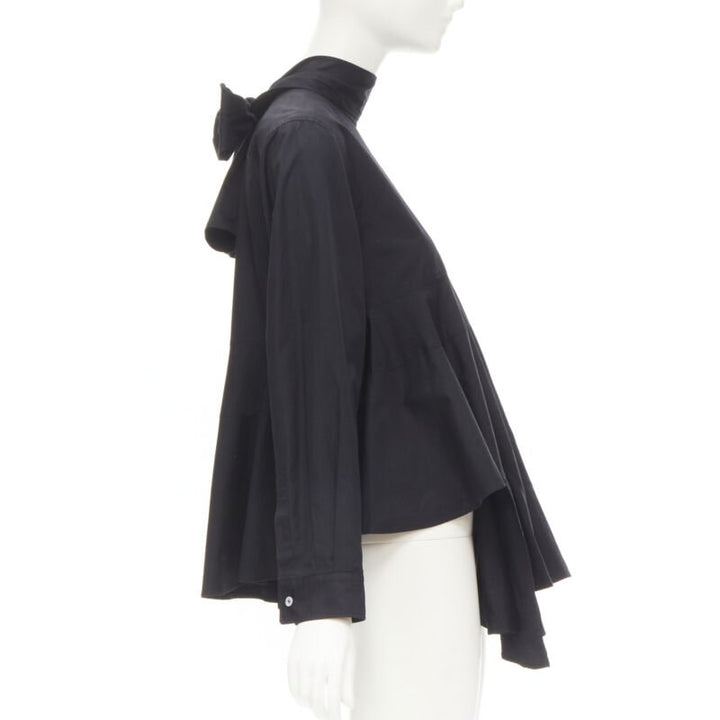 COMME DES GARCONS 1980s Vintage black asymmetric tiered flared tie back shirt M