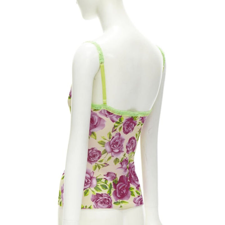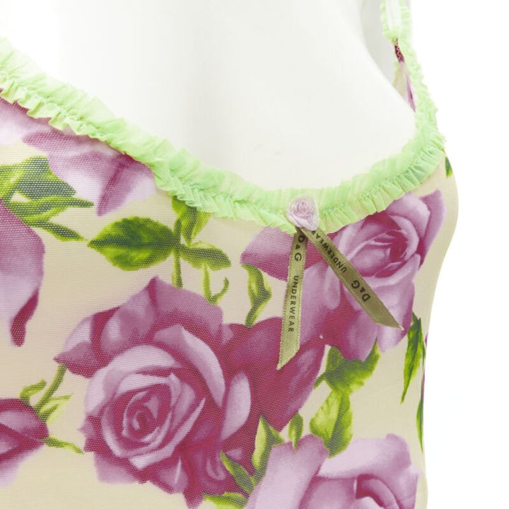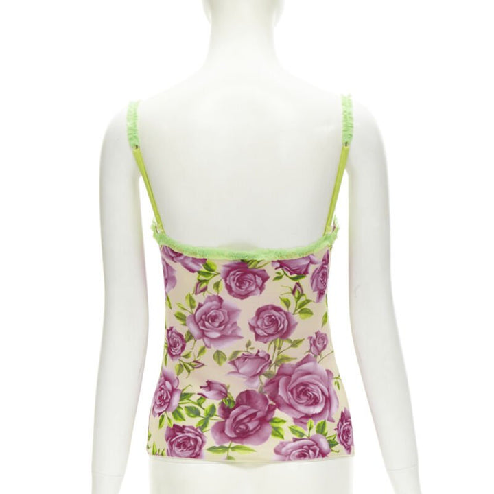 D&G DOLCE GABBANA Vintage Y2K pink rose green ruffle trim cami tank top XS