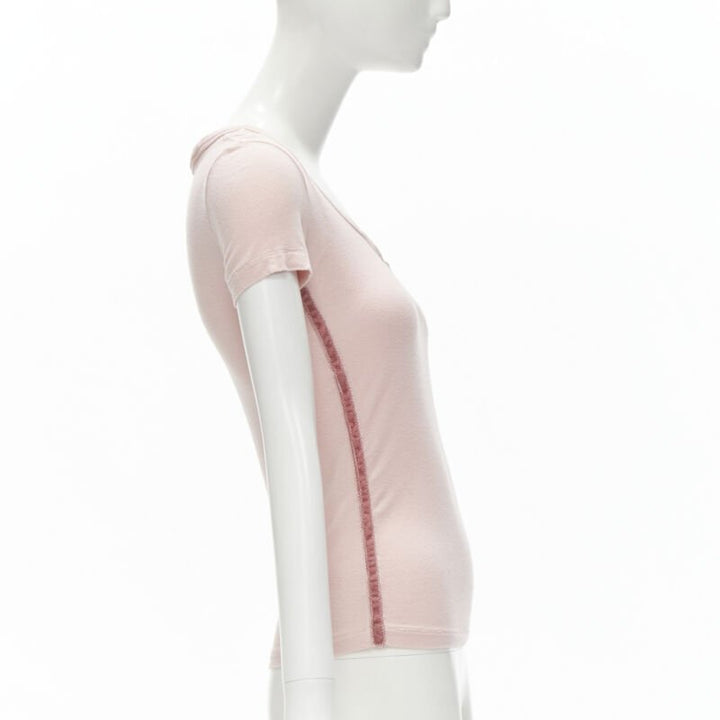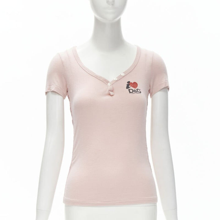 D&G DOLCE GABBANA Y2K pink logo I Love DG velvet trim V-neck tshirt IT40 XS