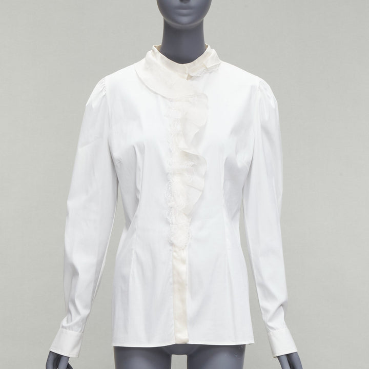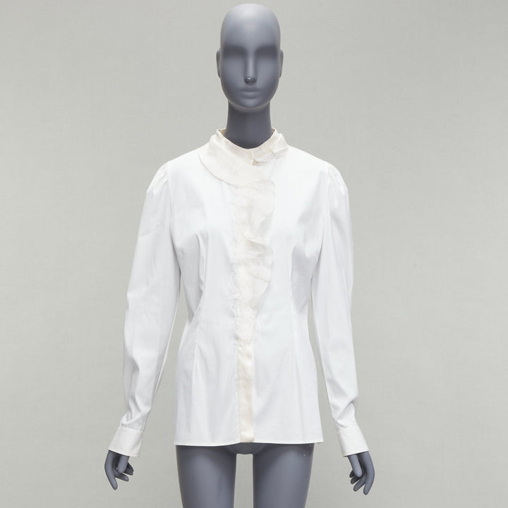 DOLCE GABBANA ivory lace ruffle collar long sleeve fitted dress shirt IT46 XL
