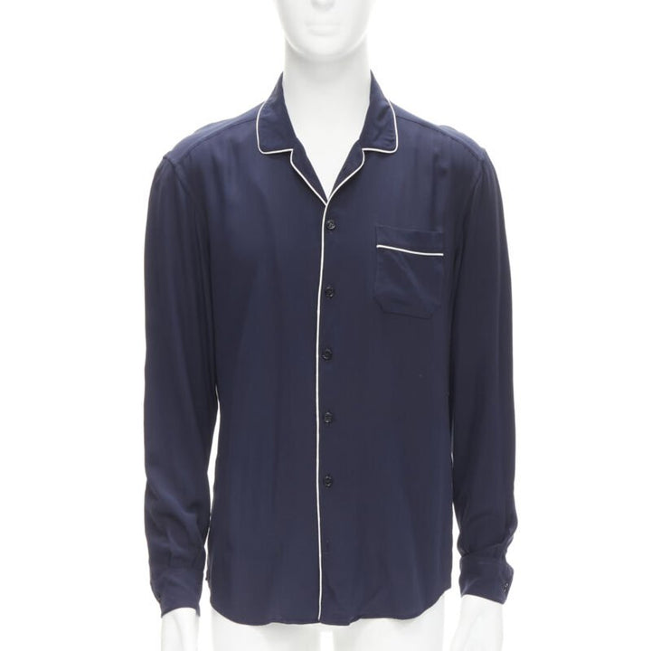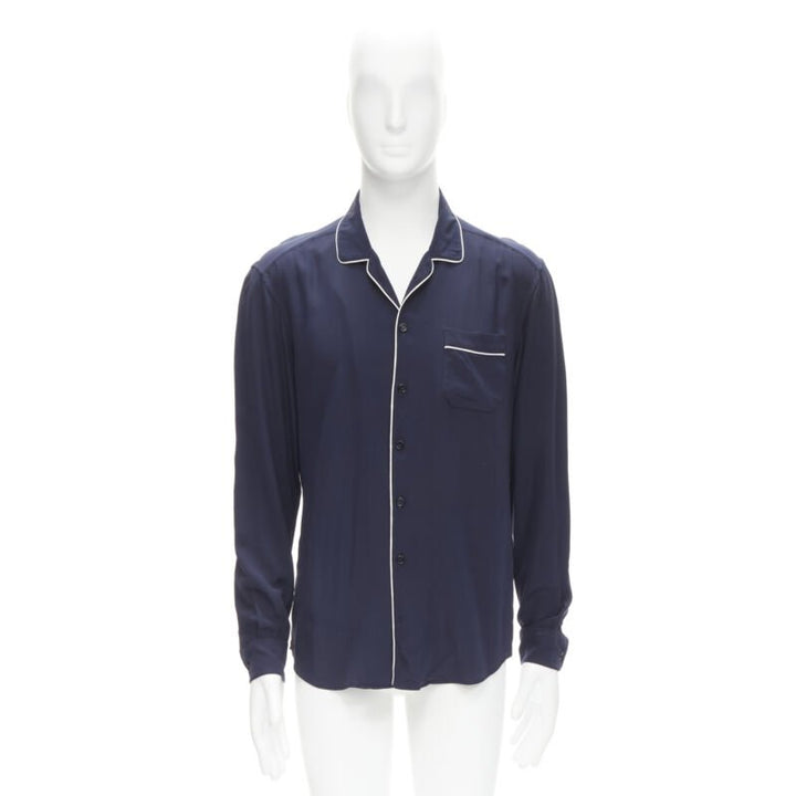 DOLCE GABBANA navy blue white piping casual pajama shirt S IT4