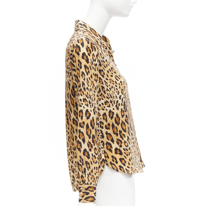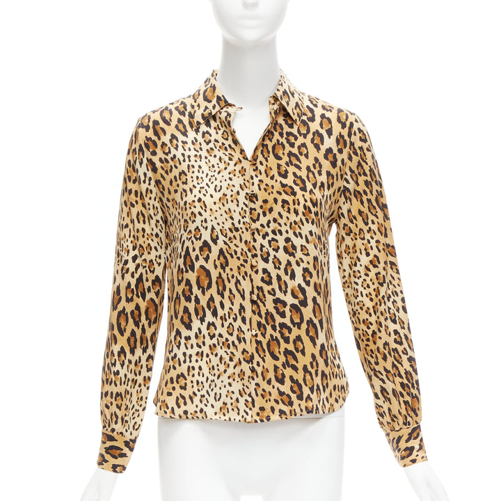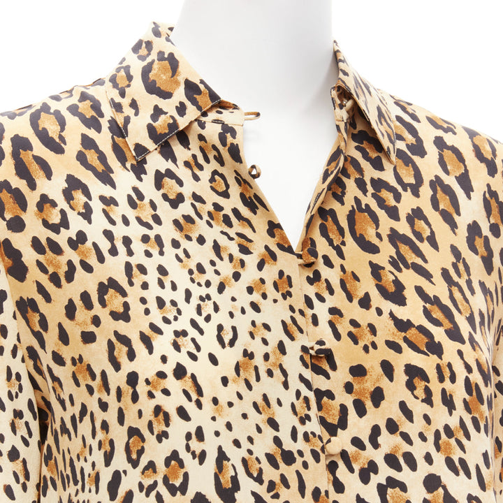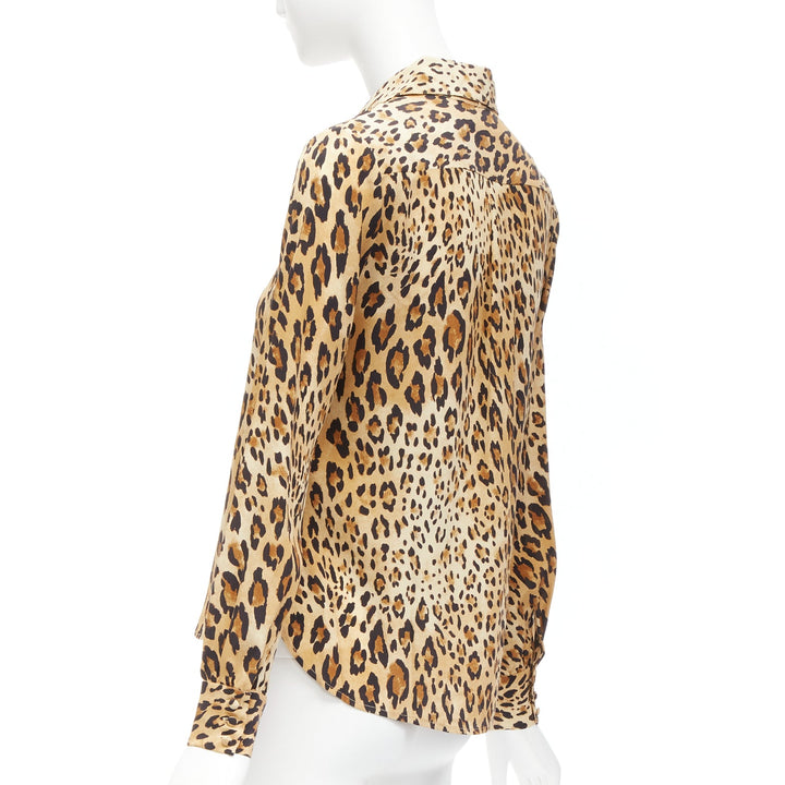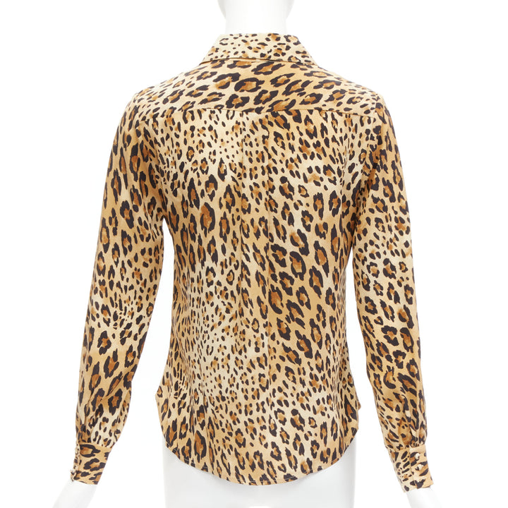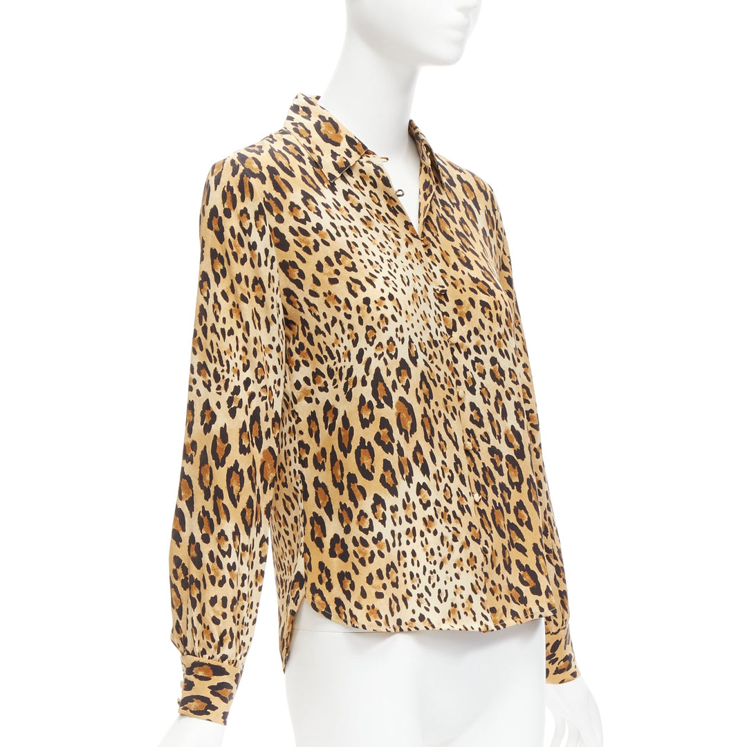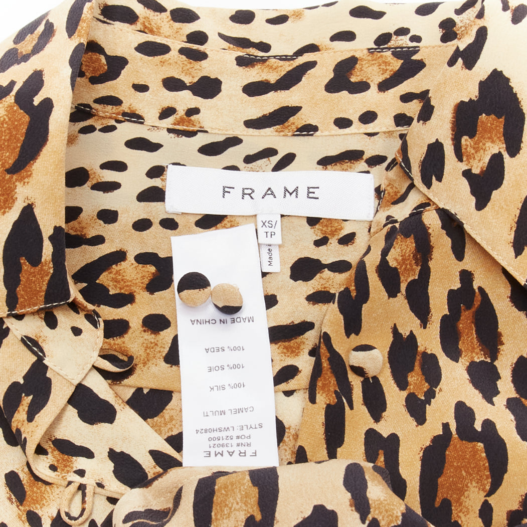 FRAME 100% silk Camel Multi brown leopard print long sleeve shirt XS