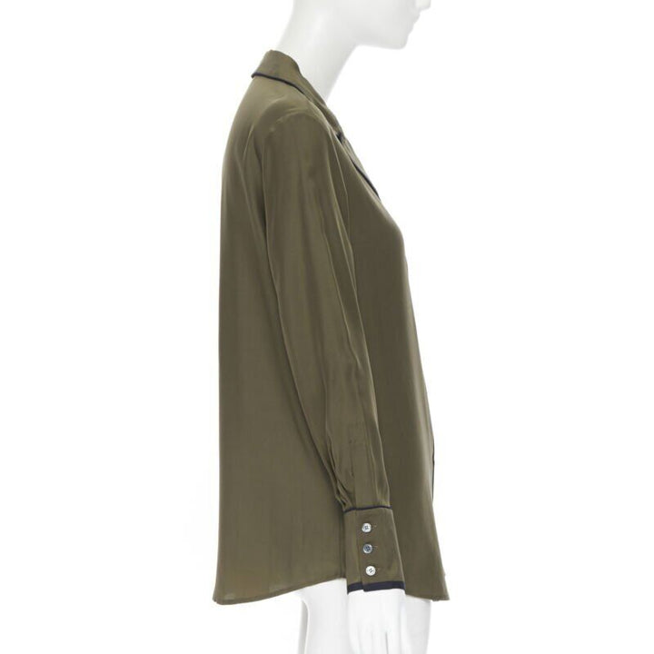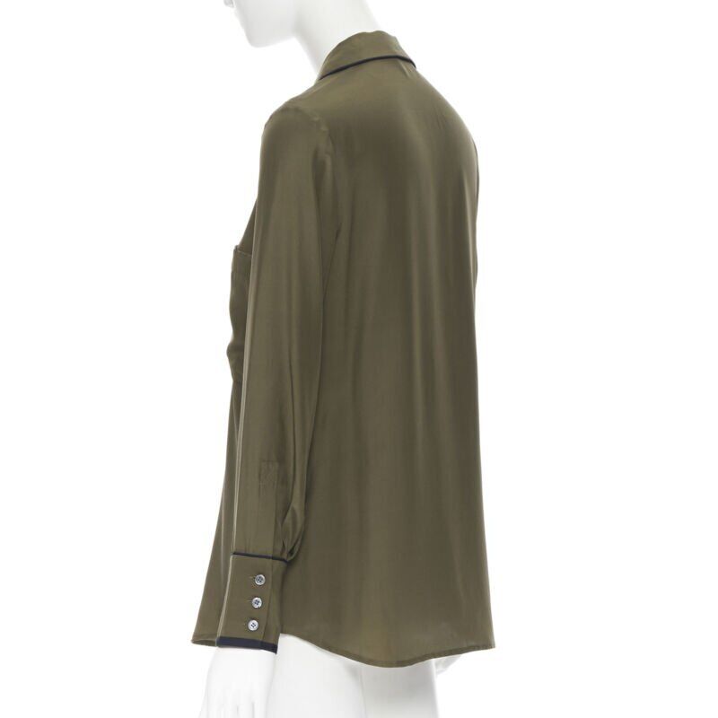 FRAME 100% silk forest green black piping casual pyjama shirt XS