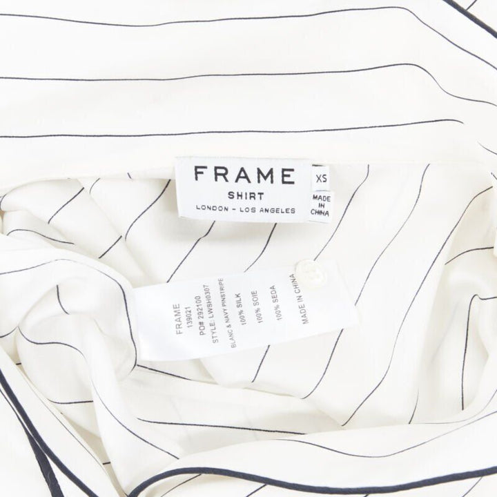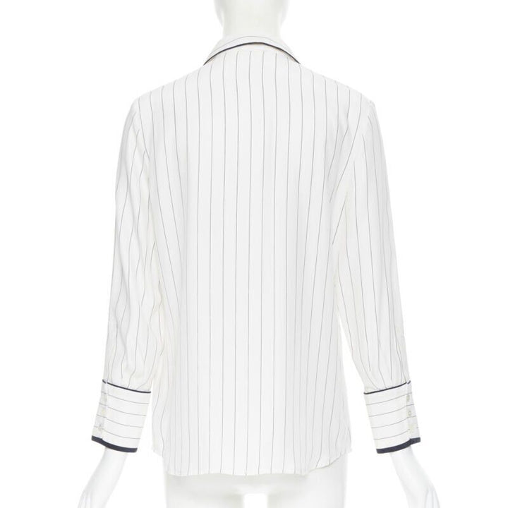 FRAME 100% silk white black vertical stripe black piping casual pyjama shirt XS