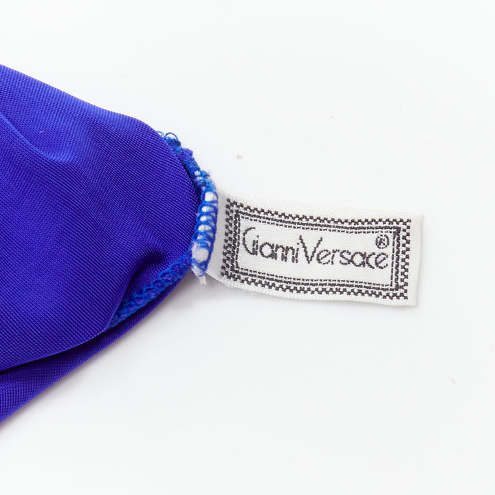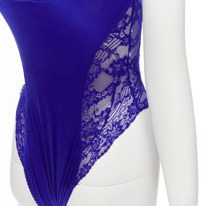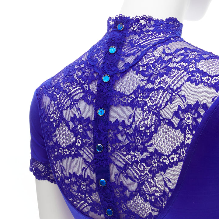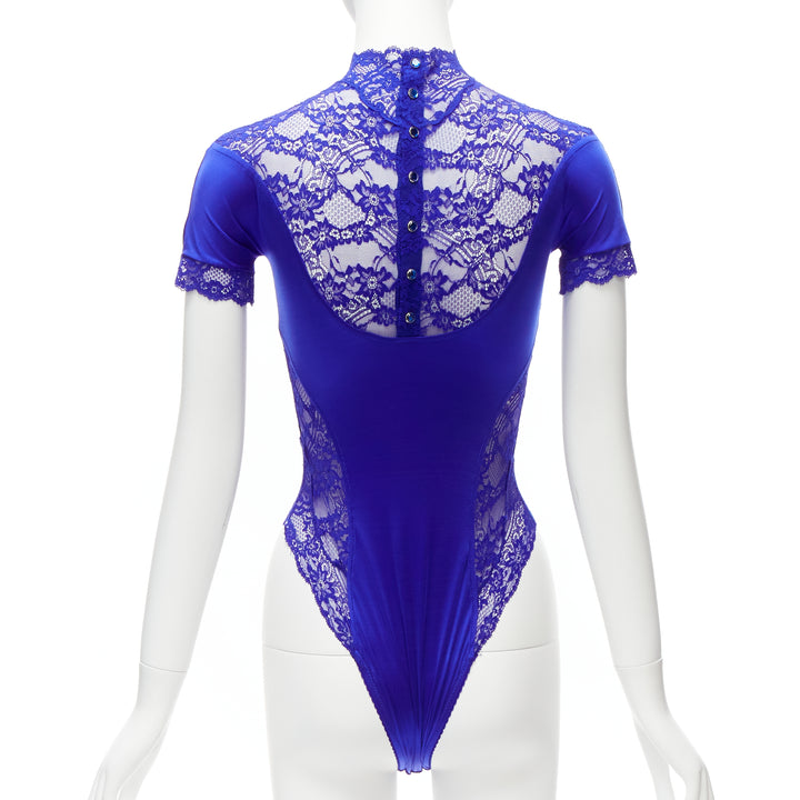 GIANNI VERSACE Vintage blue lace satin panels blue crystal body suit top