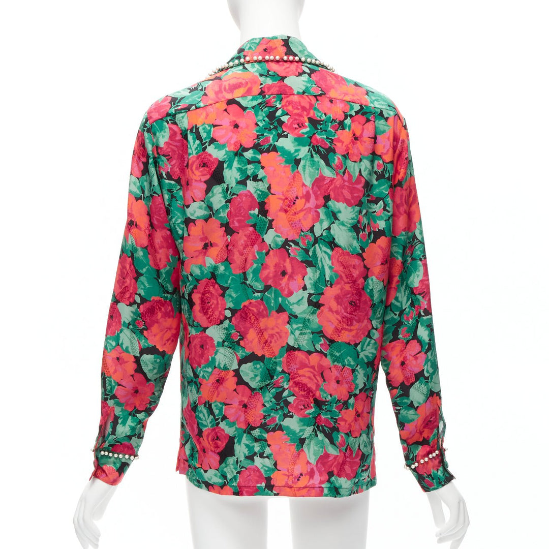 GUCCI ALESSANDRO MICHELE 2016 red green floral GG pearl bow silk shirt IT38 XS