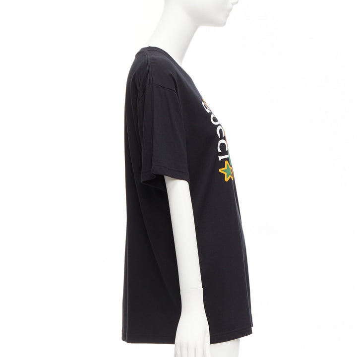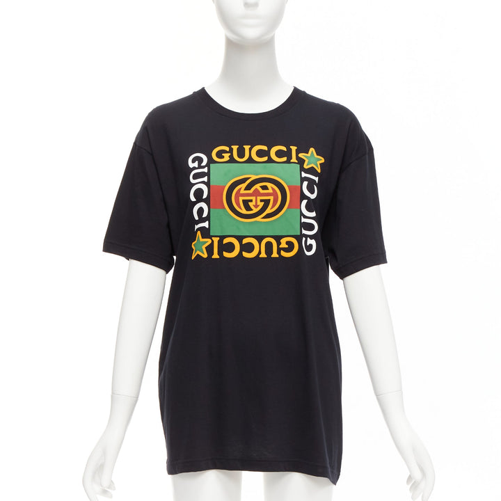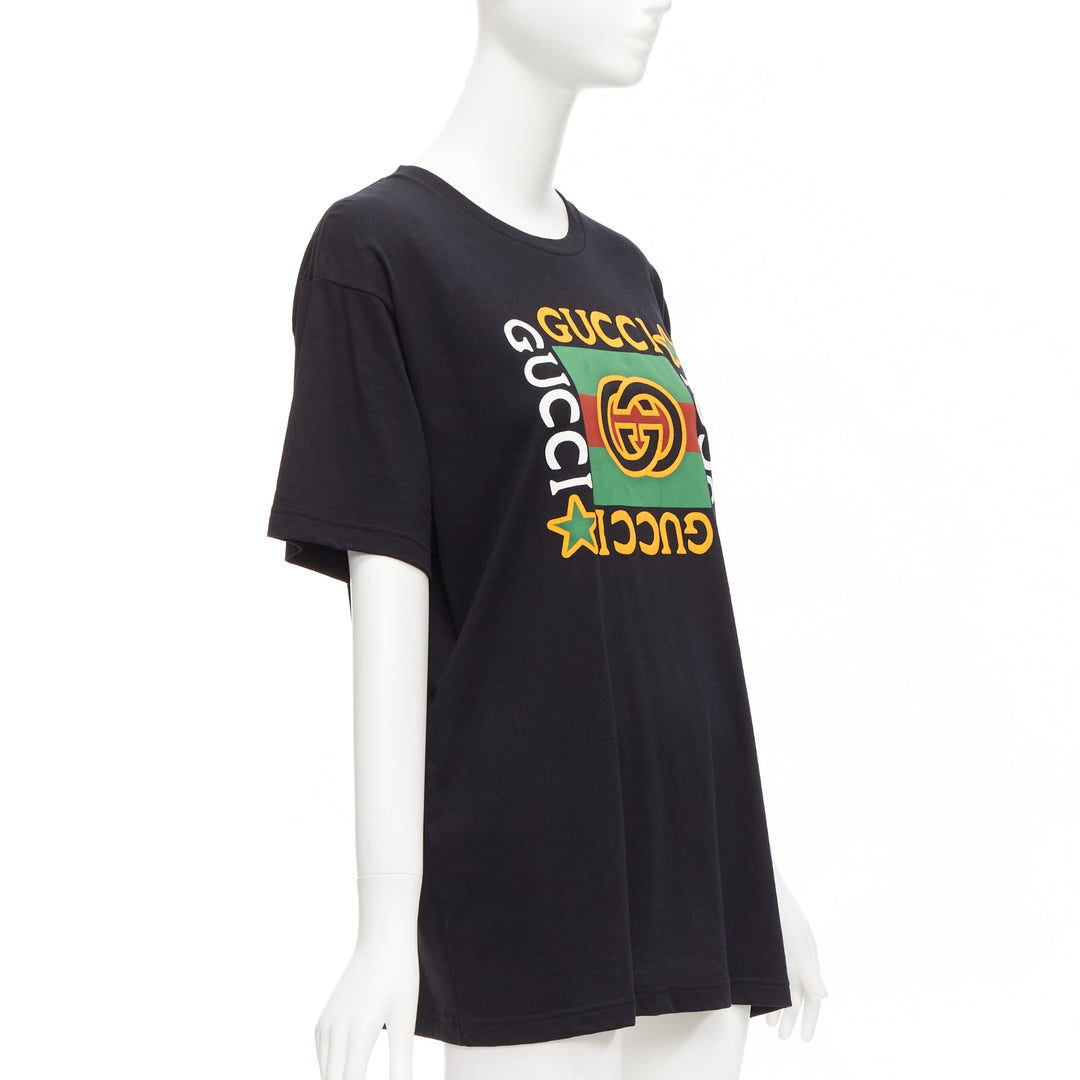 GUCCI black Vintage GG box logo cotton long relaxed tshirt XXS