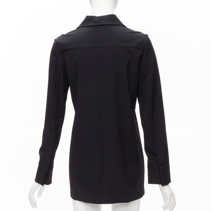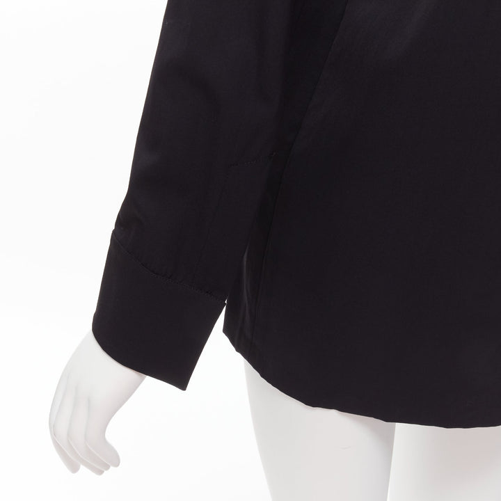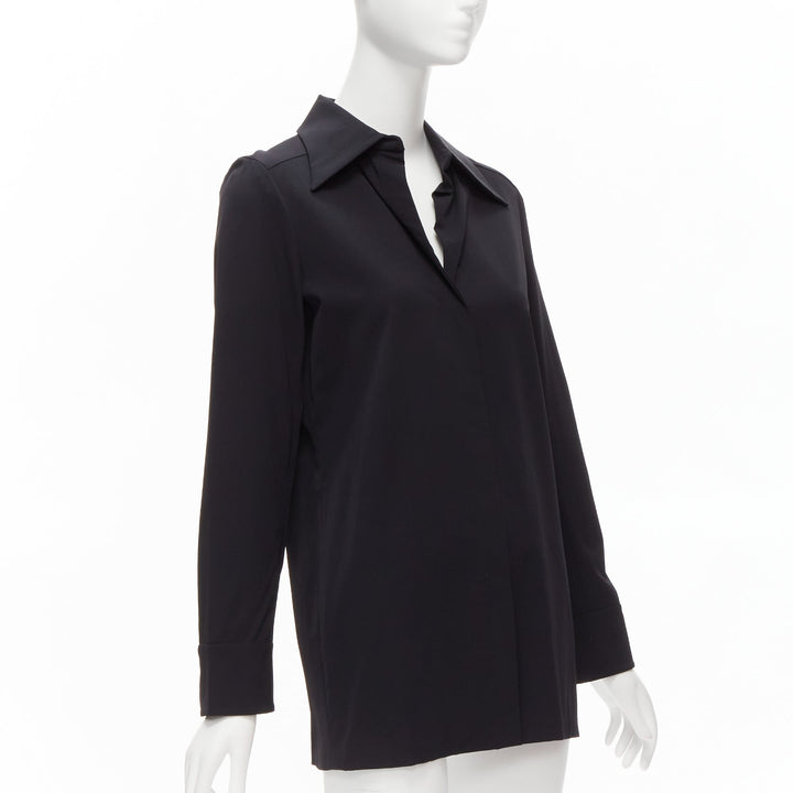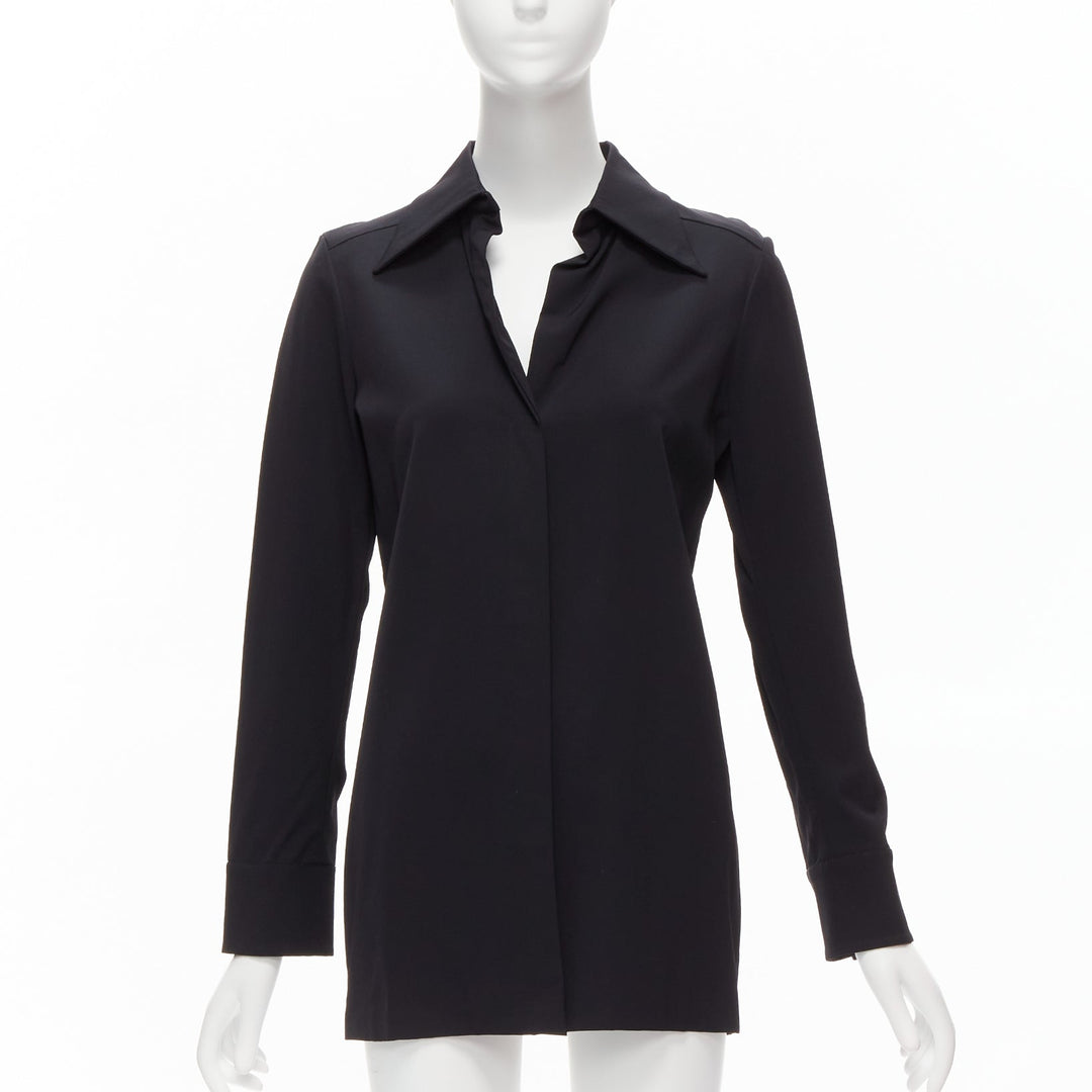 GUCCI Vintage black minimal concealed buttons wide collar shirt top IT38 XS