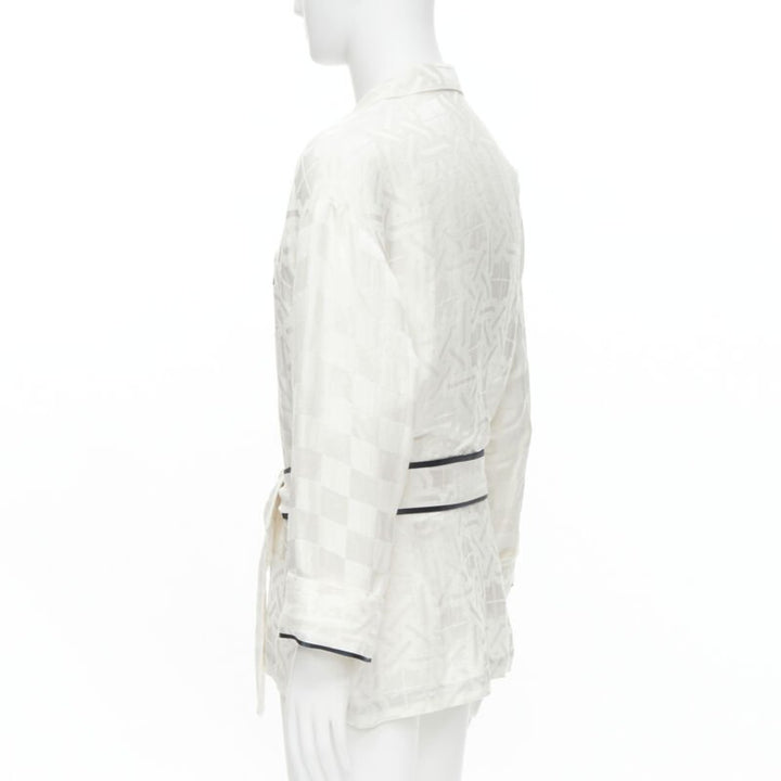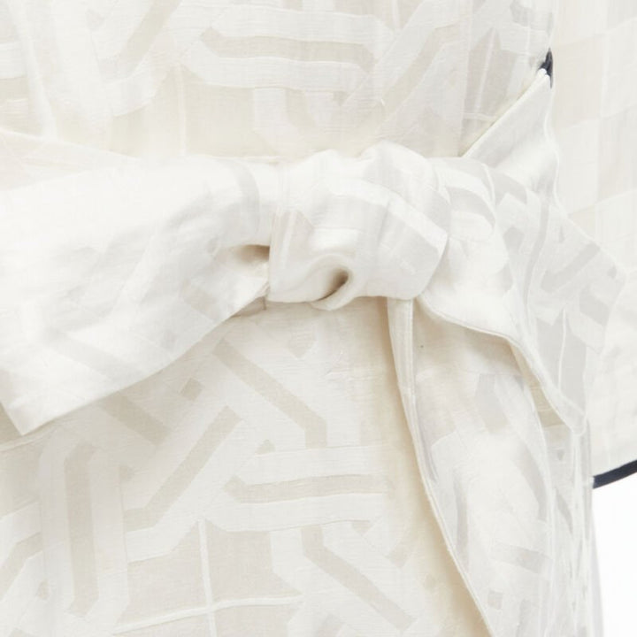HAIDER ACKERMANN white geometric jacquard linen silk belted robe shirt FR36 XS