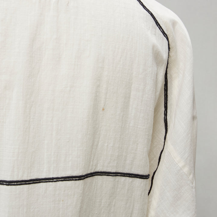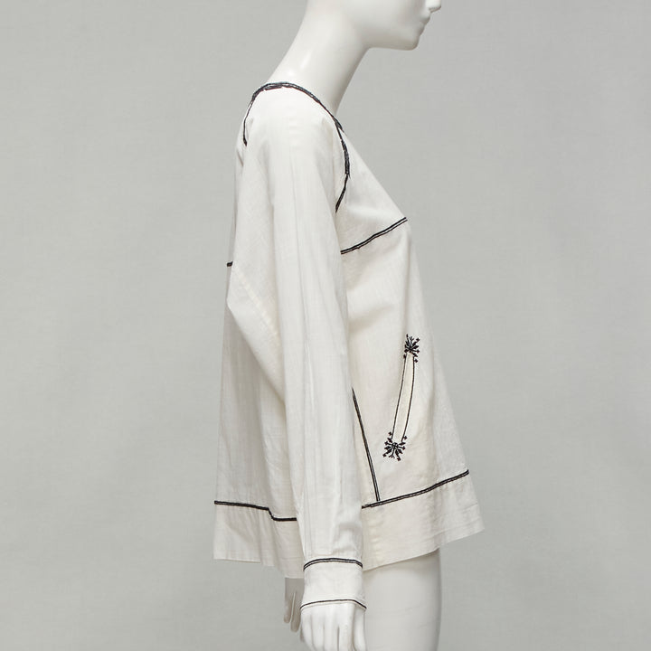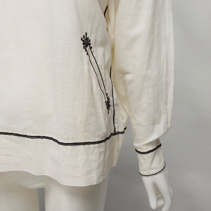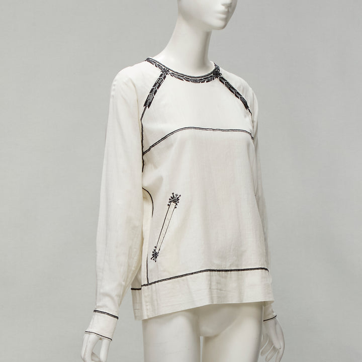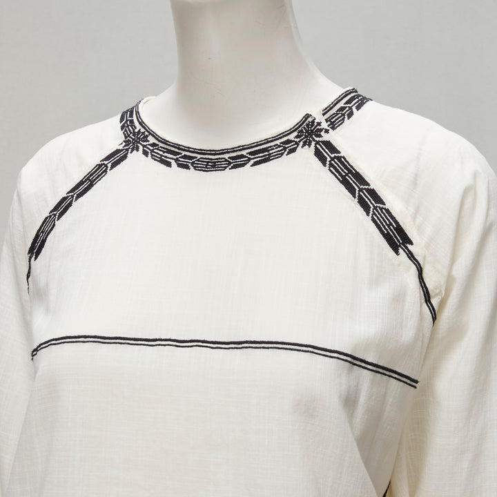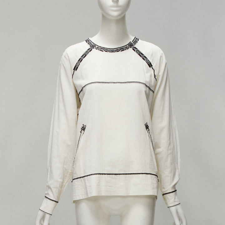 ISABEL MARANT ETOILE black embroidery cream cotton pocketed boho top FR36 S