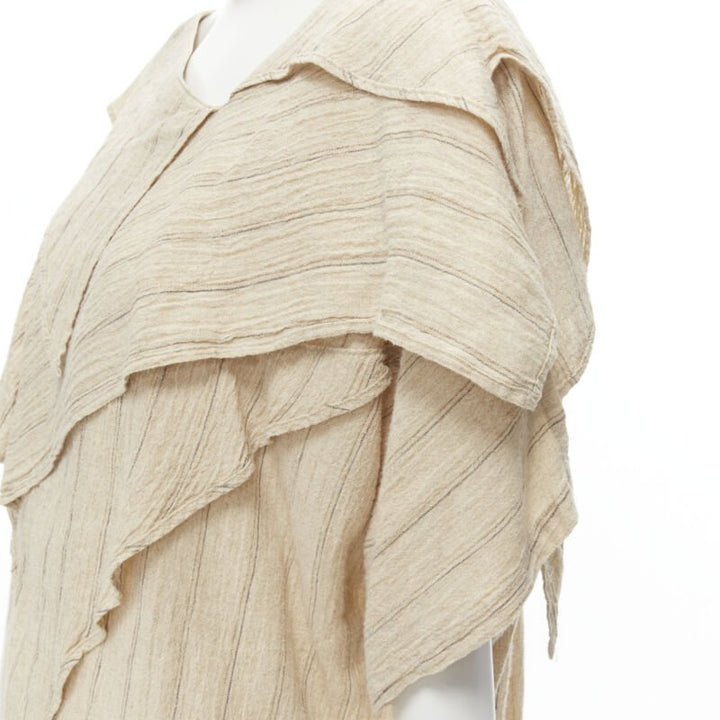 ISSEY MIYAKE 1980's Vintage beige striped linen waterfall ruffle top S Rare