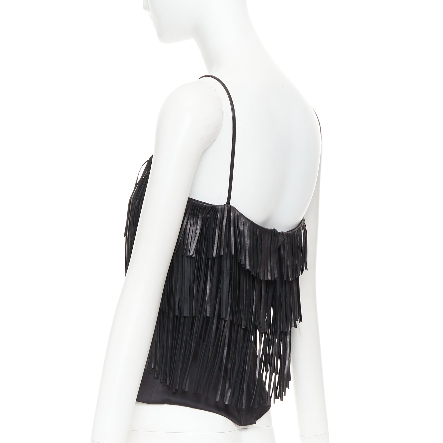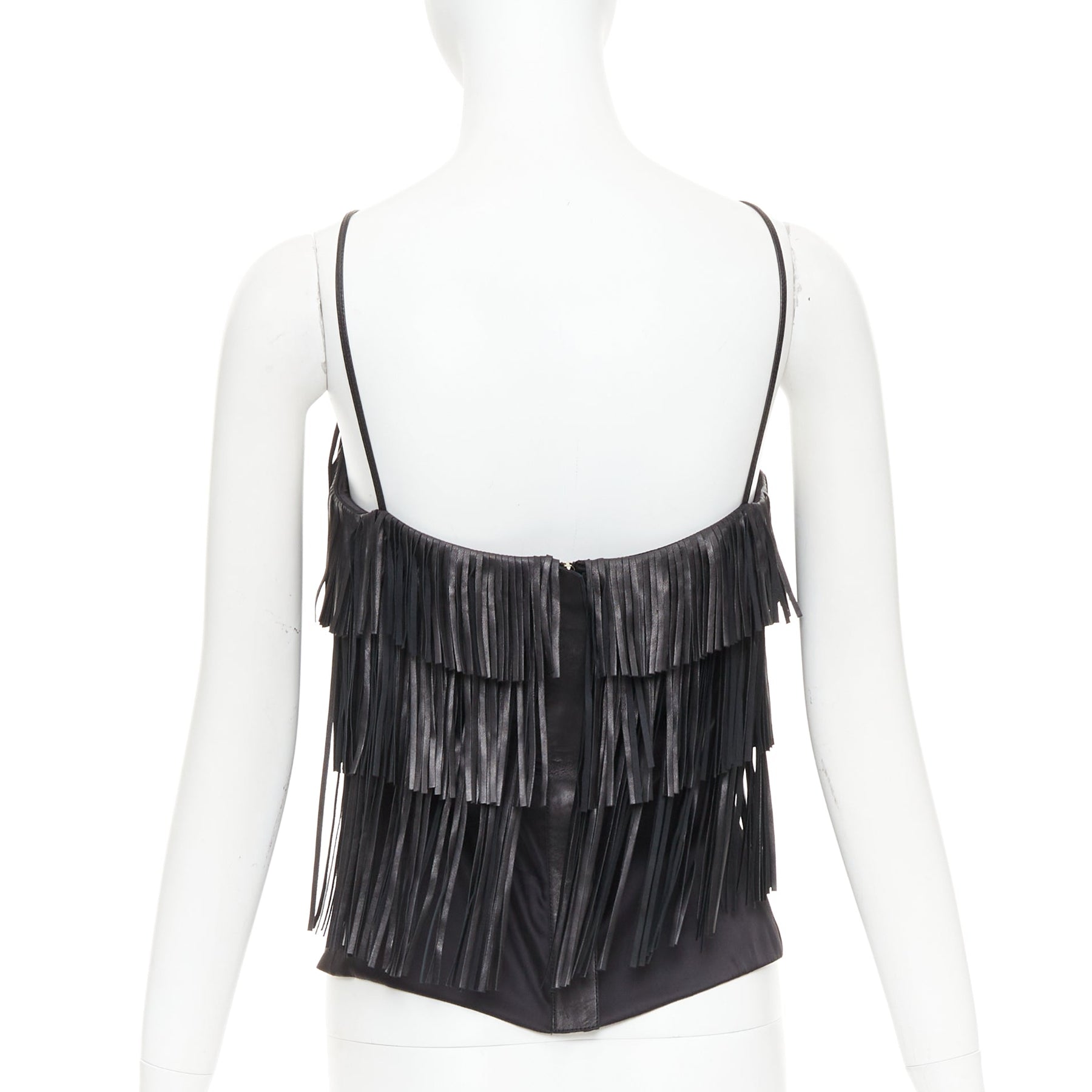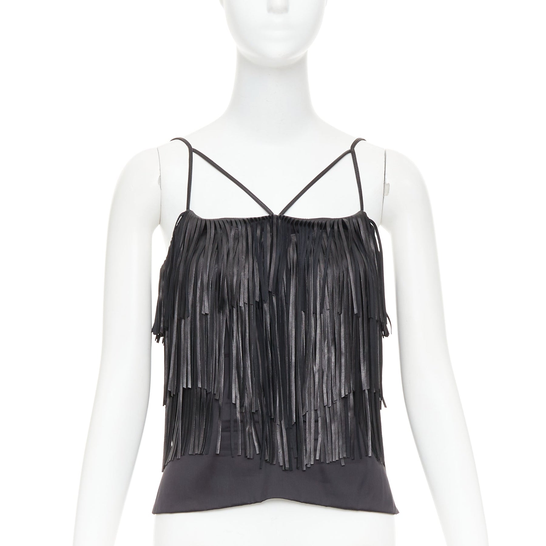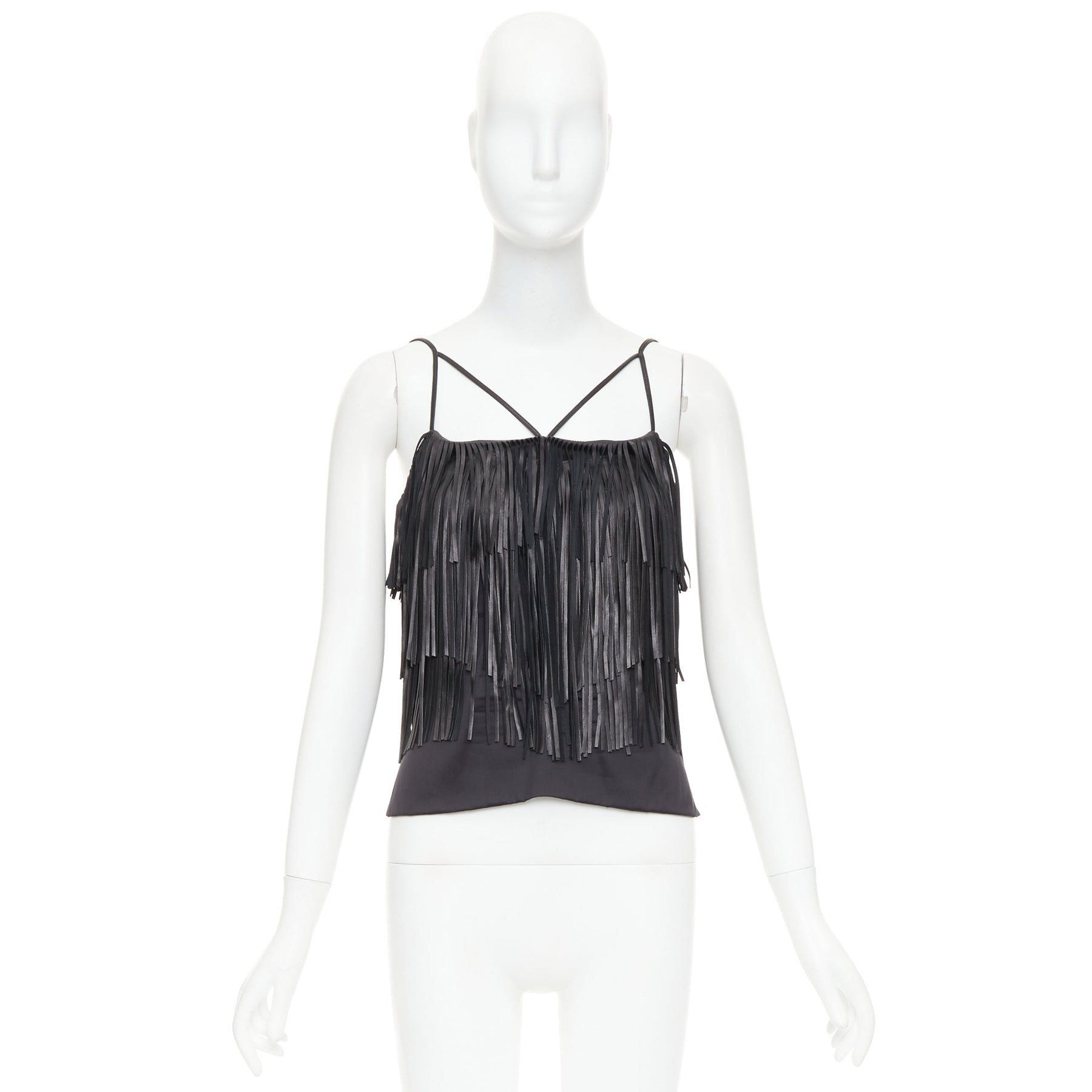 JITROIS black fringed lambskin leather silk blend lined flapper top FR38 M