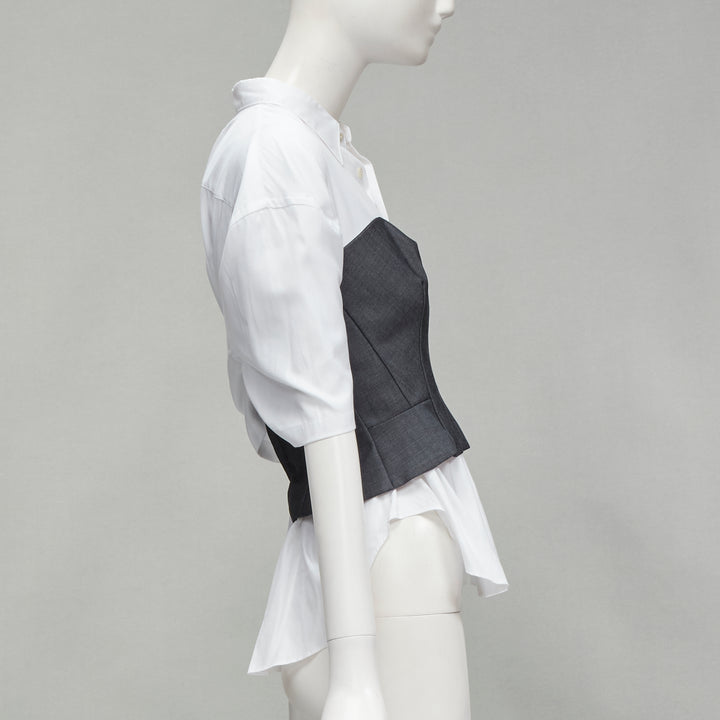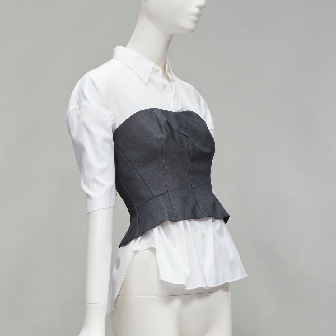 JUNYA WATANABE 2018 grey bias cut bustier deconstructed gathered back shirt XS
