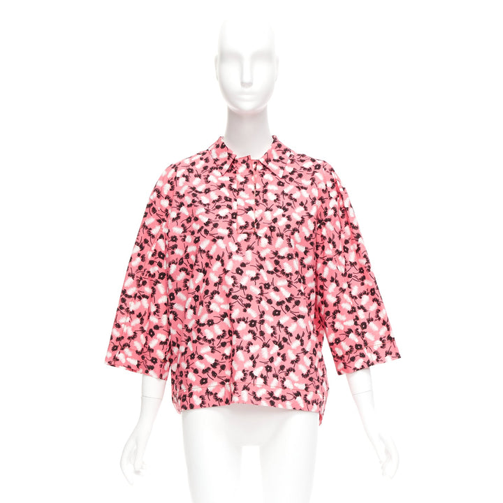 MARNI 100% cotton pink black white feather print boxy shirt IT38 XS