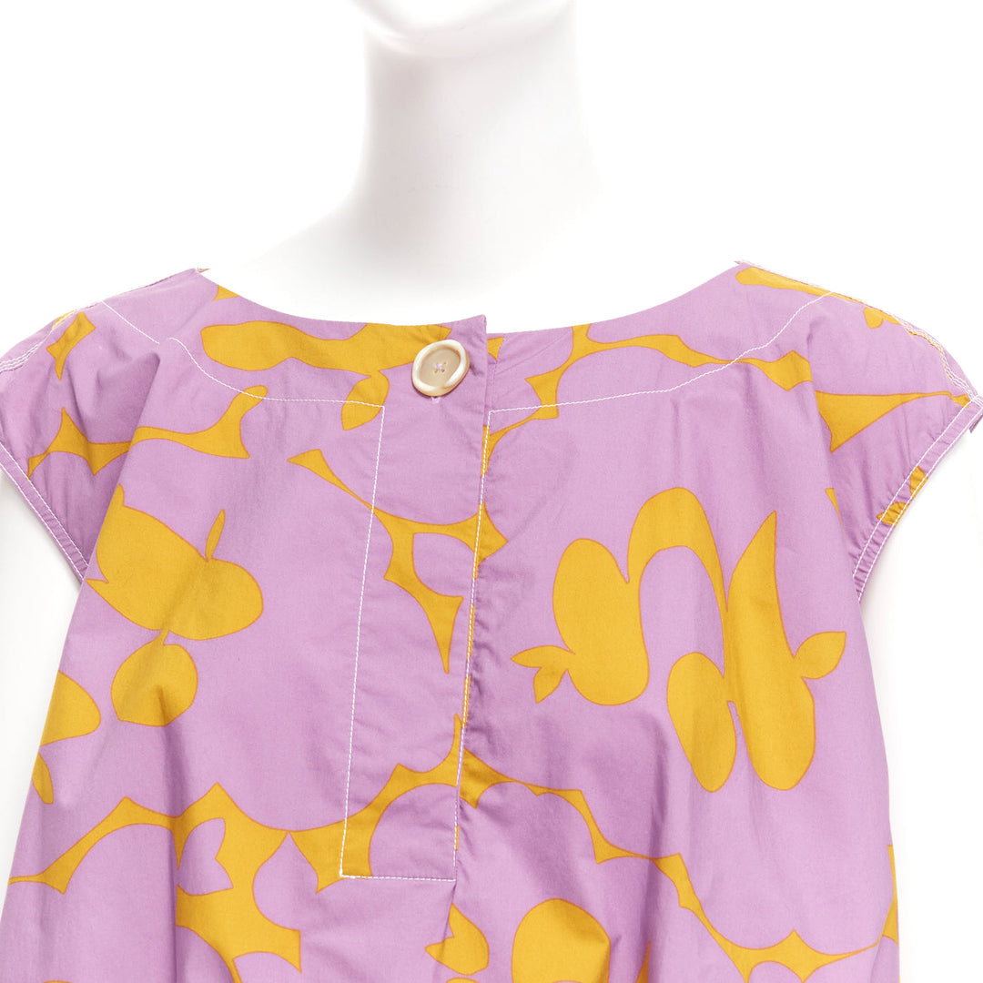 MARNI 100% cotton purple mustard abstract floral overstitched boxy vest IT38 XS