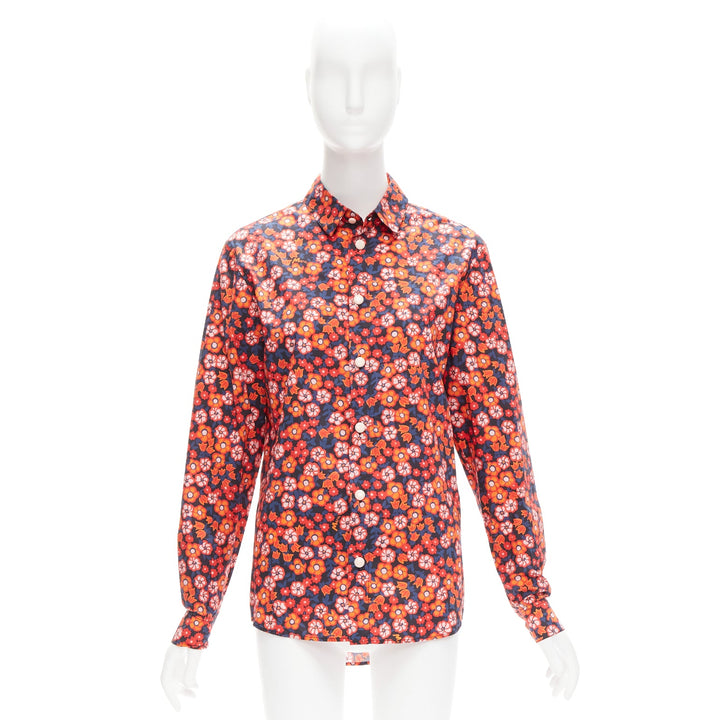 MARNI 100% cotton red blue floral print long sleeve shirt top IT38 XS