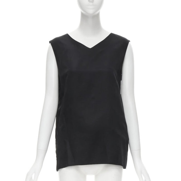 MARNI black V-neck heavy acetate panelled back hem sleeveless boxy top IT38 XS