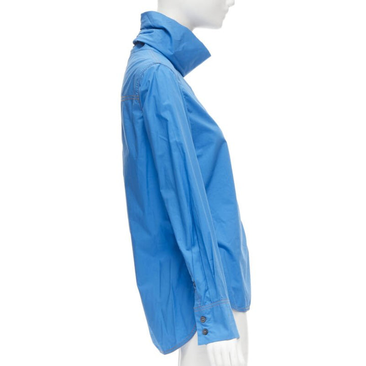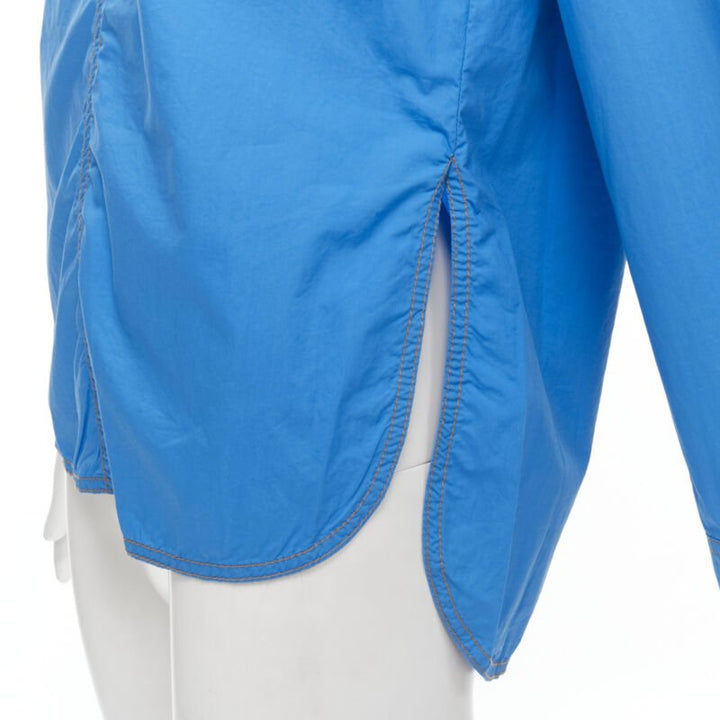 MARNI blue cotton overstitch funnel neck long sleeve curved hem shirt IT38 XS