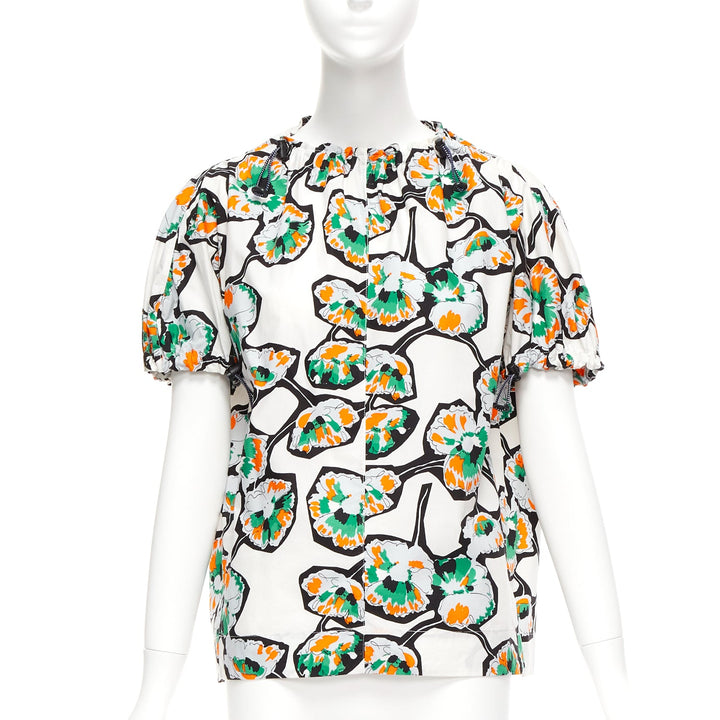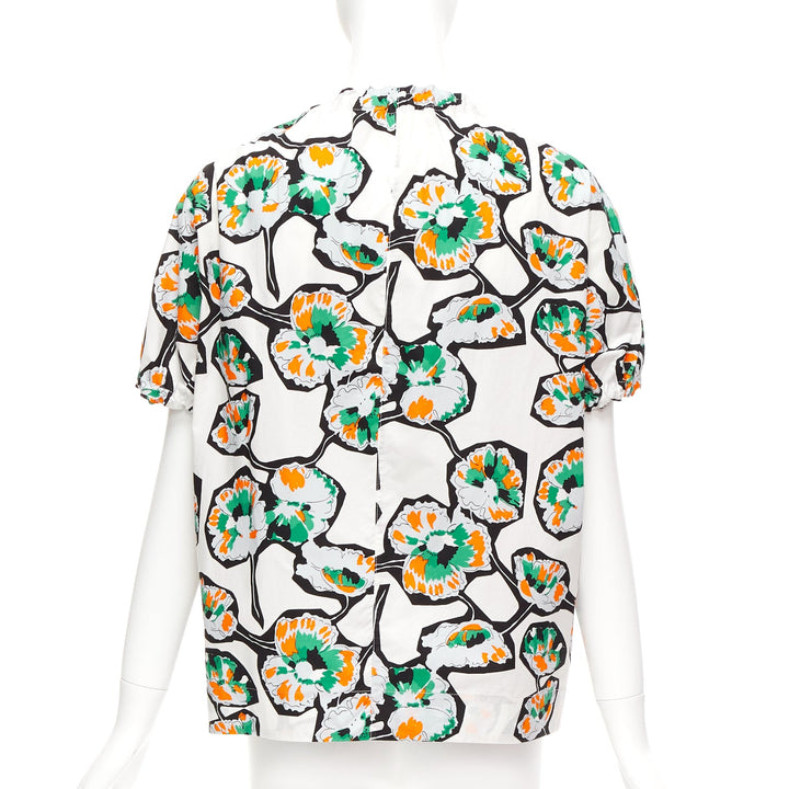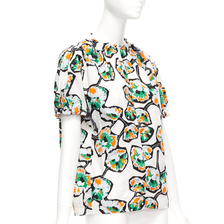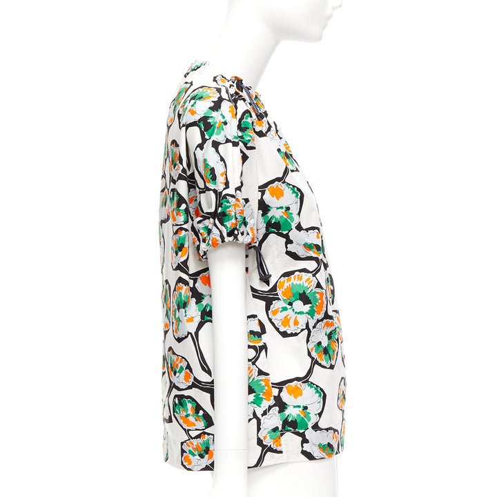 MARNI green orange floral print drawstring loop toggle shirt IT40 S