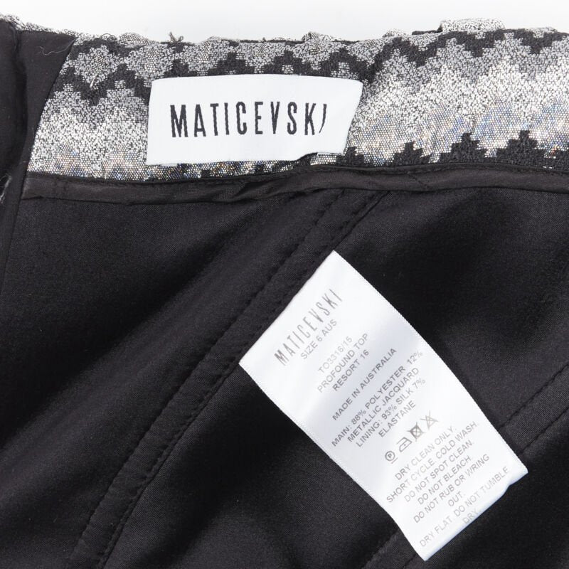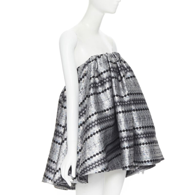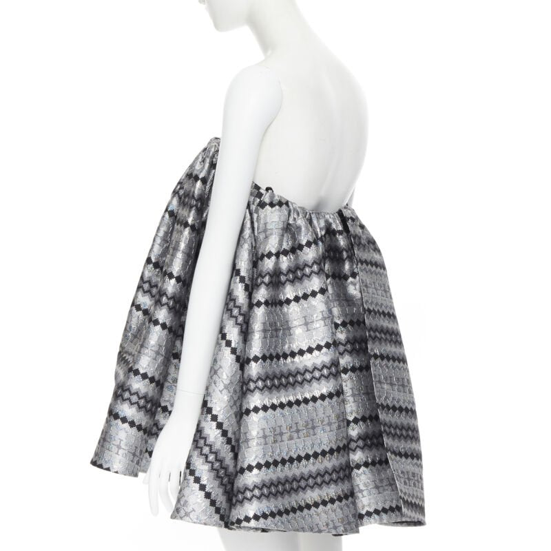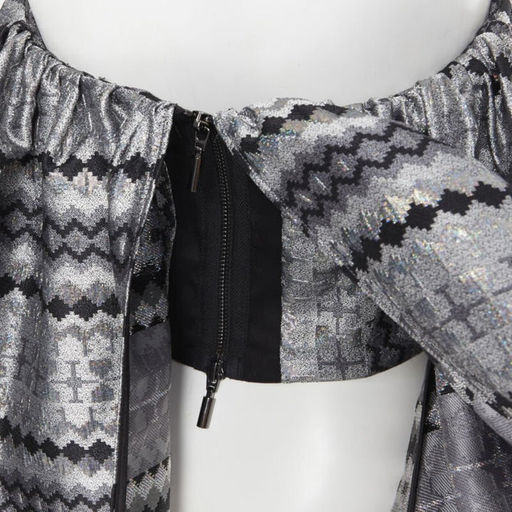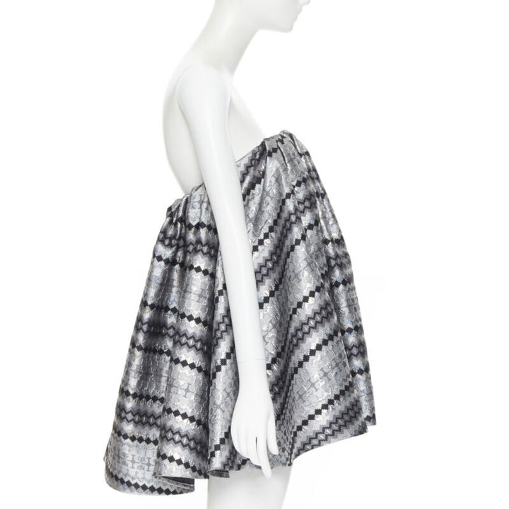 MATICEVSKI 2016 Profound metallic silver lurex jacquard flared strapless top XS