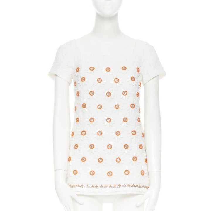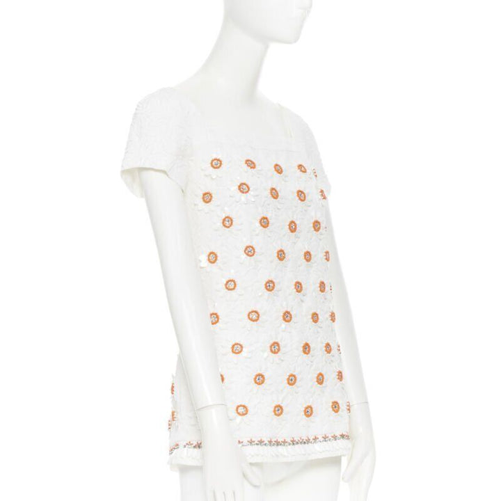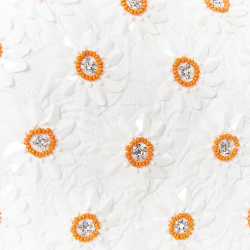MOSCHINO white cloque cotton orange bead crystal floral embellished top IT38